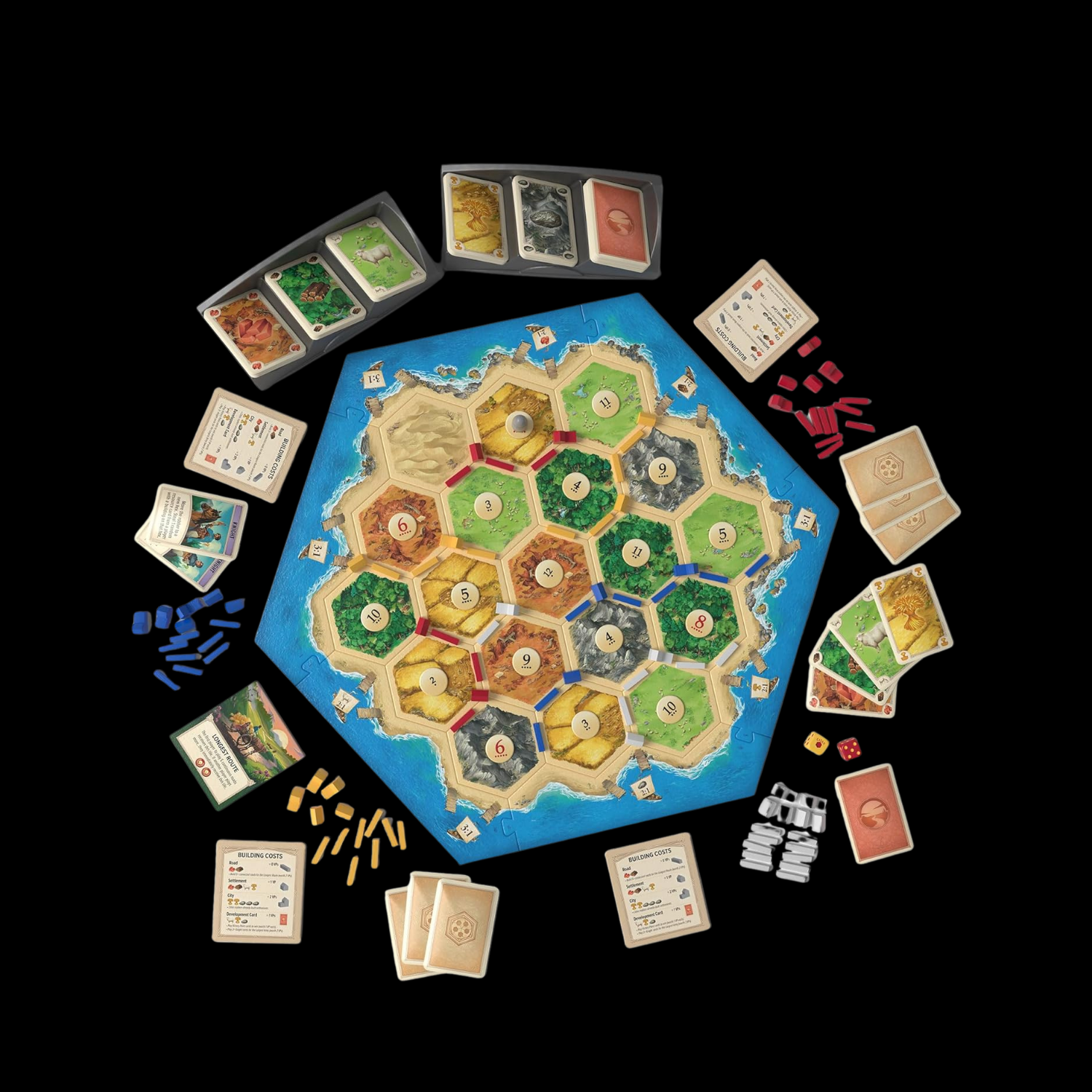 Lancez-vous dans une quête pour établir l’île de Catane. Guidez vos colons vers la victoire par un commerce astucieux et un développement rusé. Utilisez des combinaisons de ressources pour acheter des cartes de développement pratiques et construire des routes, des colonies et des villes. Acquérez vos ressources à travers des échanges, des cartes ou des dés chanceux. Mais attention ! Quelqu’un pourrait couper votre route et vous ne savez jamais quand le voleur pourrait voler certains de vos gains précieux !