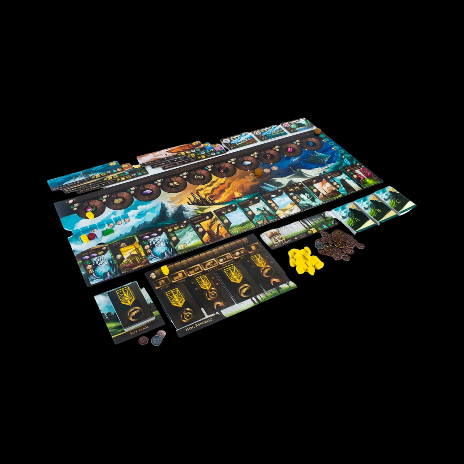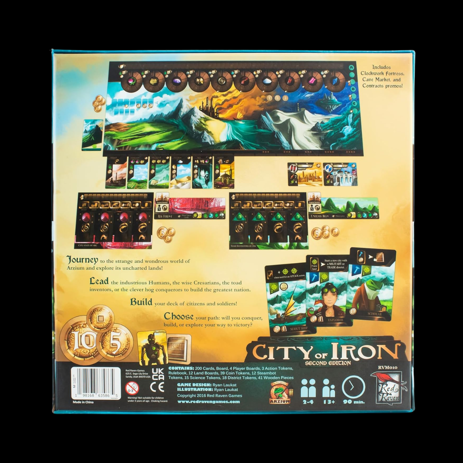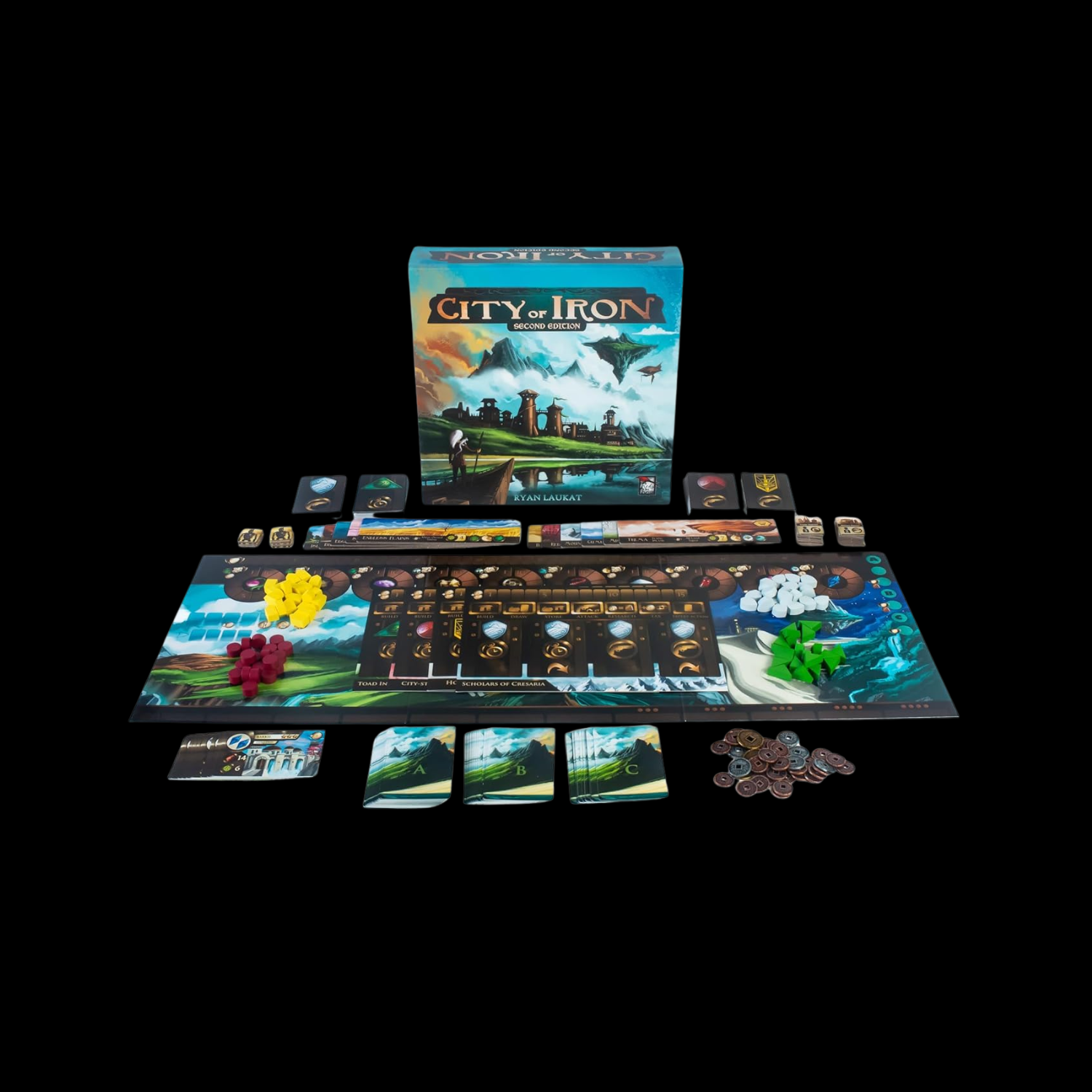 Dans City of Iron, 2 à 4 joueurs s’affrontent pour construire une petite nation dans un monde de machines, de magie et d’argent. Deviens le chef de l’une des quatre nations rivales : les humains industrieux, les ingénieurs crapauds, les érudits cresariens ou les hommes d’Hog intelligents. Produire des biens comme des pièces de machines et des démons en bouteille pour gagner de la richesse, ou rechercher une technologie de l’âge de vapeur et recruter des mercenaires pour contrôler le continent. Si vous voulez établir de nouvelles villes, vous construirez des schooners ou des dirigeables pour atteindre des terres lointaines et des îles volantes. Vos villes ont une capacité limitée, donc vous devrez décider quoi garder et quoi démolir lors de la construction de structures avancées. L’avenir d’une nation est entre vos mains. Construisez les fondations incassables d’un empire ou disparaissez dans les pages poussiéreuses de l’histoire.