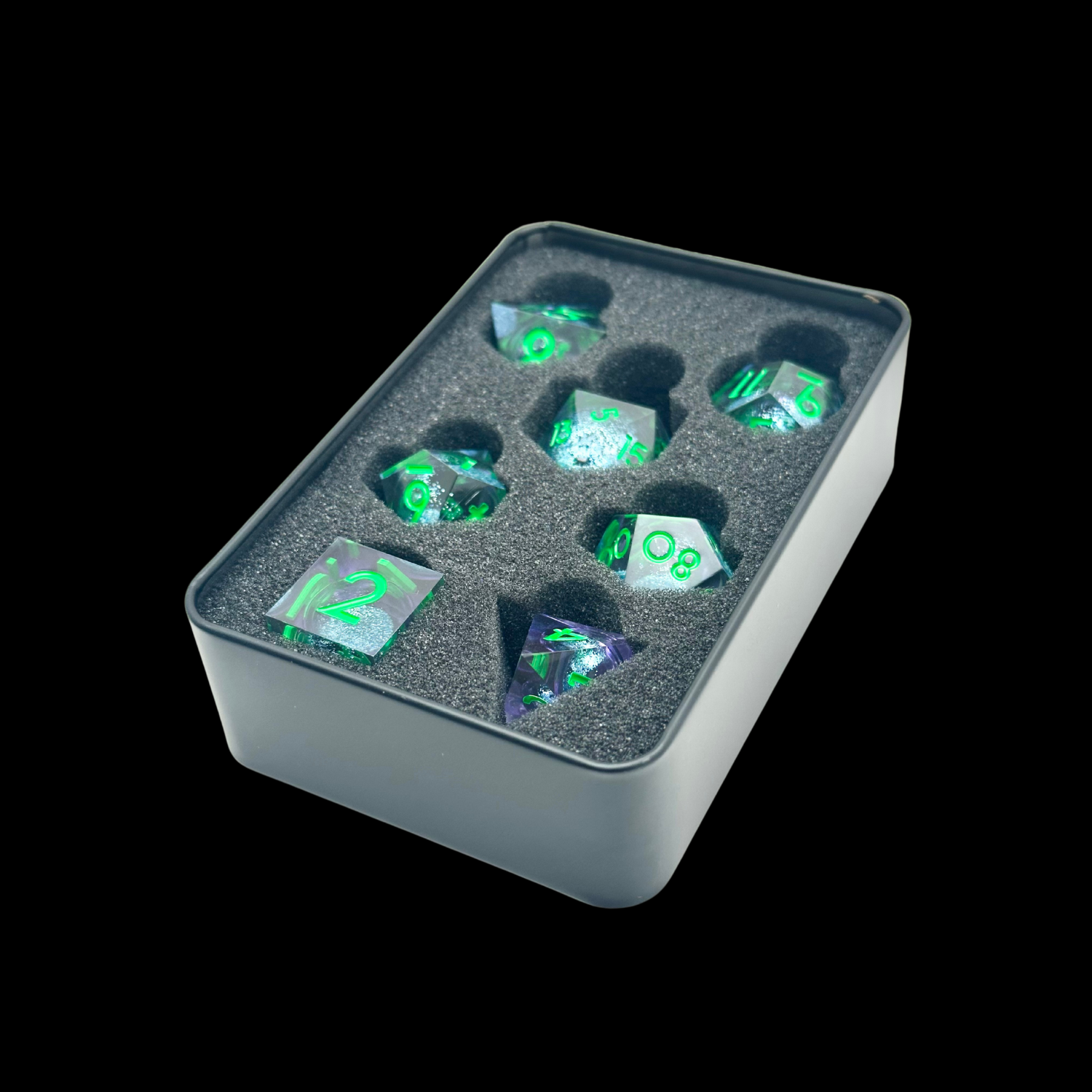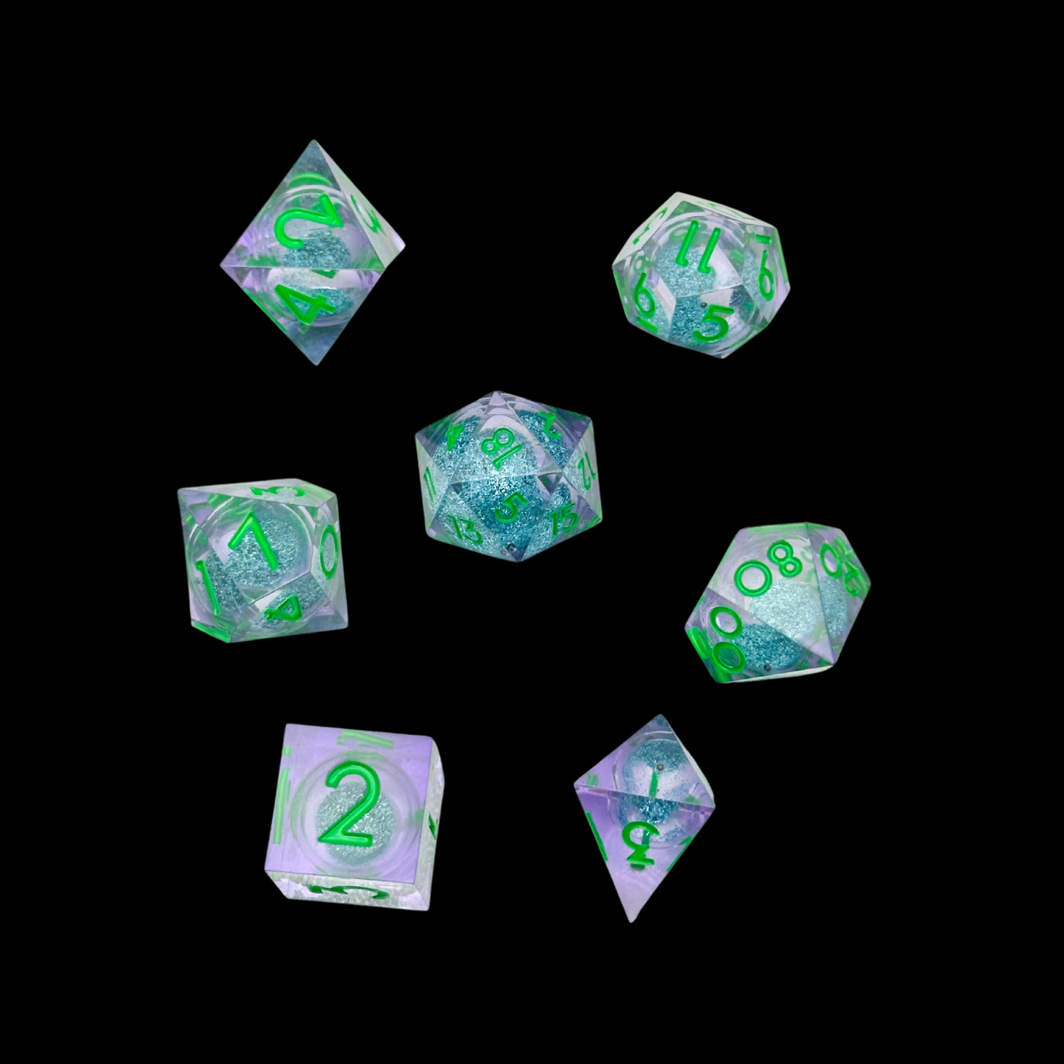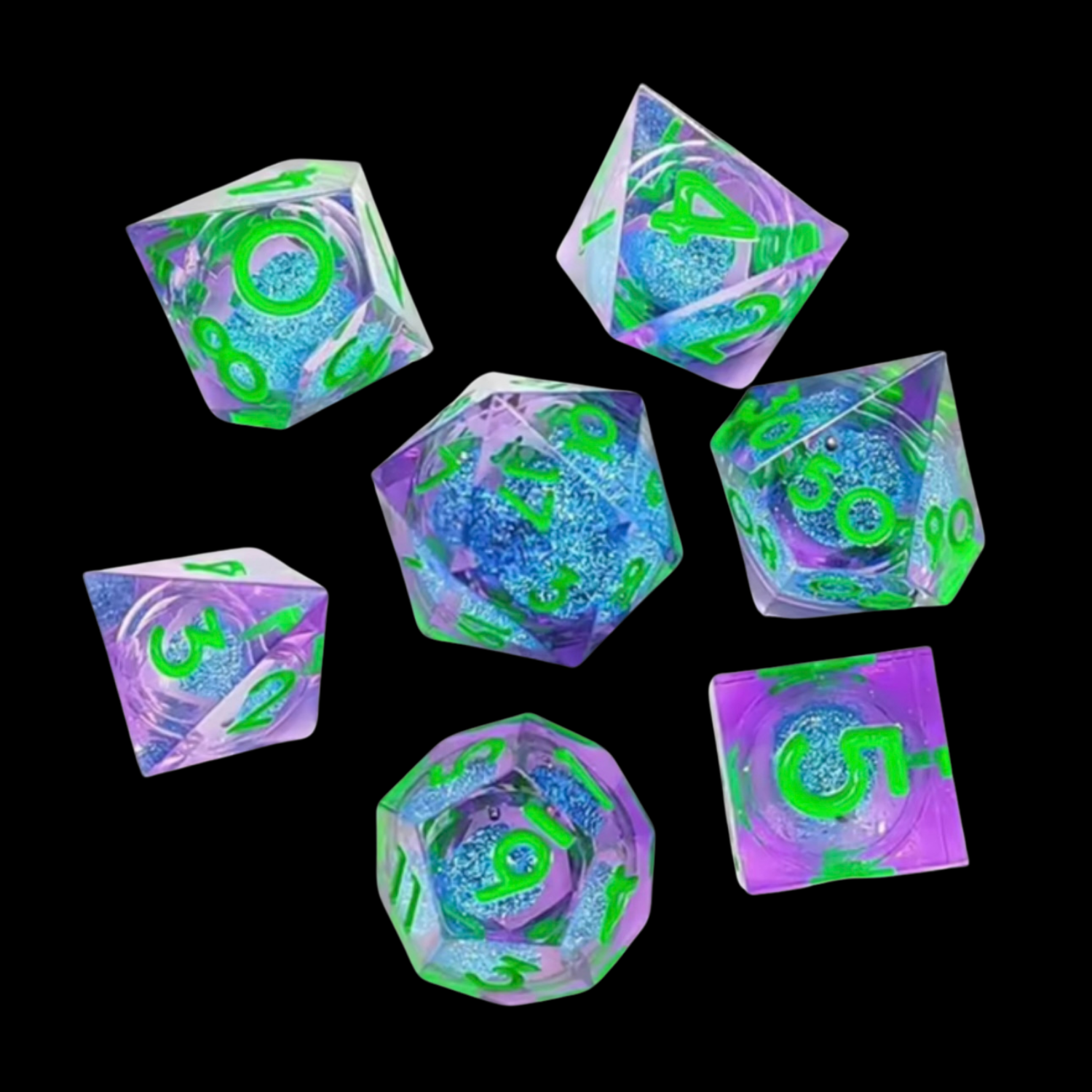 Ensemble de dés Dungeon And Dragons Résine Liquide Core Vert/Violet/Bleu.