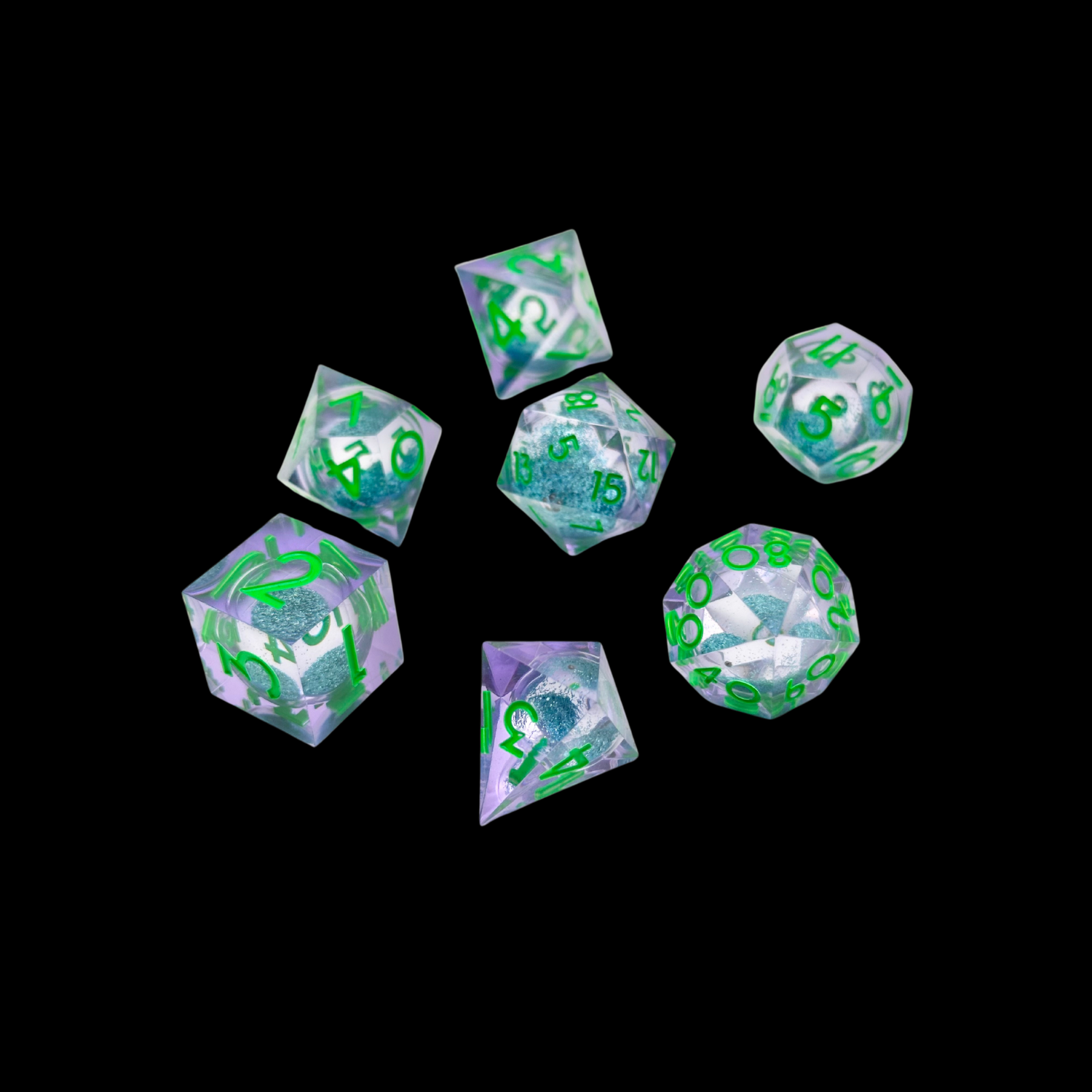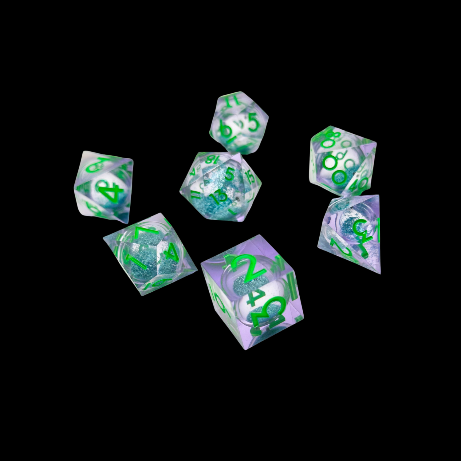 Jeu de dés Dungeon & Dragons en résine à noyau liquide vert/violet/bleu
