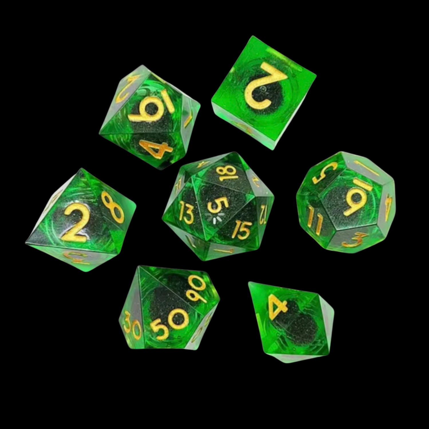 Ensemble de dés Dungeon And Dragons Résine Liquid Core Vert/Or/Noir.