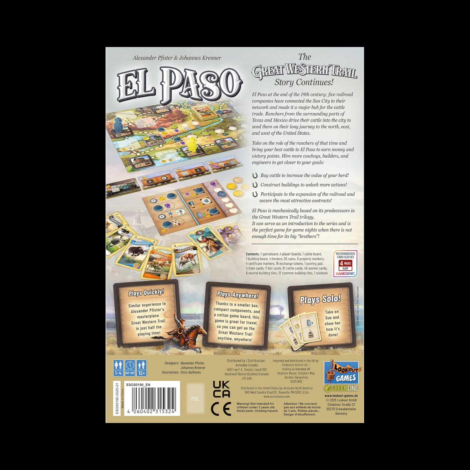 El Paso est mécaniquement basé sur ses prédécesseurs dans la trilogie du Great Western Trail. Il peut servir d’introduction à la série et est le jeu parfait pour les soirées de jeux quand il n’y a pas assez de temps pour ses grands frères !