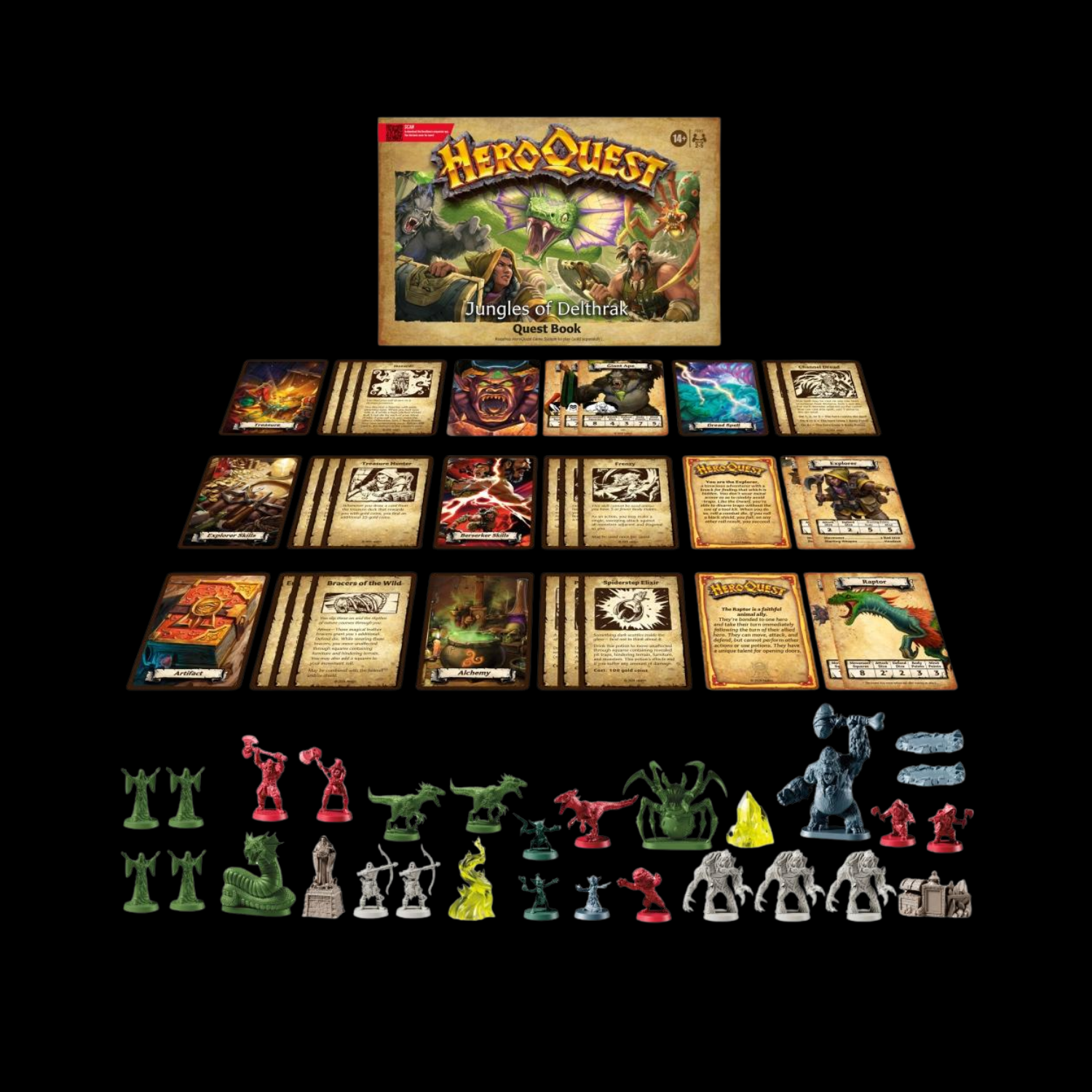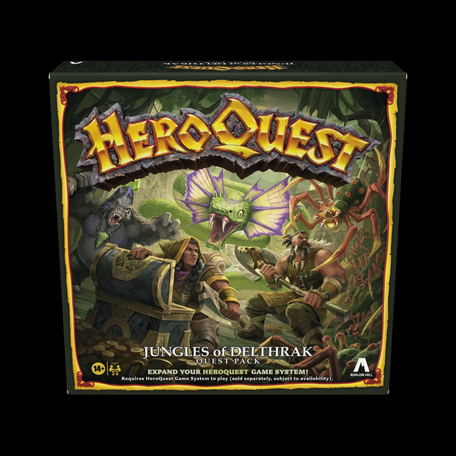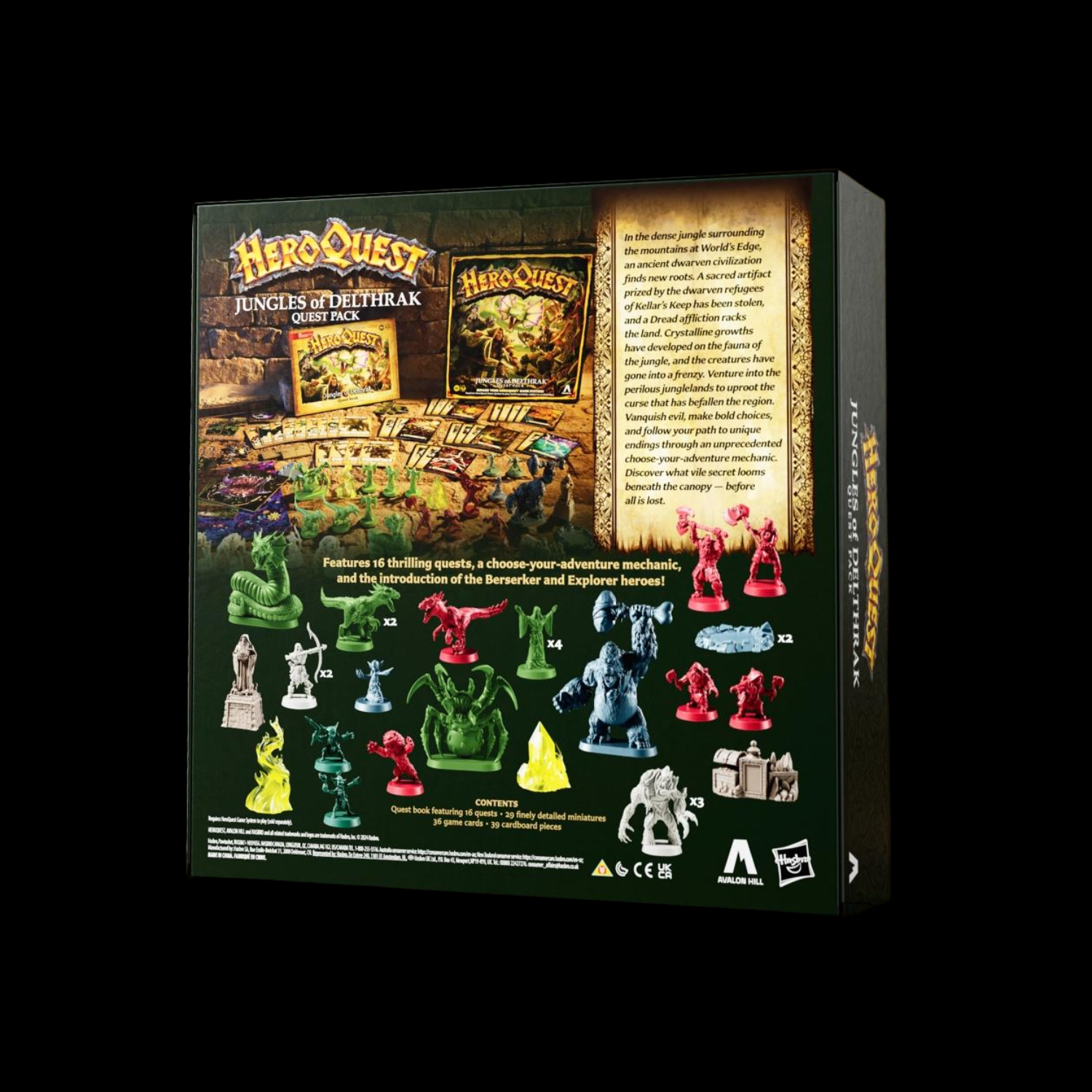 PACK D’EXTENSION HEROQUEST : Ce pack de quêtes Jungles of Delthrak comprend 16 quêtes, un mécanicien d’aventure et l’introduction des héros Berserker et Explorer ! (nécessite le système de jeu HeroQuest pour jouer. Vendu séparément.)