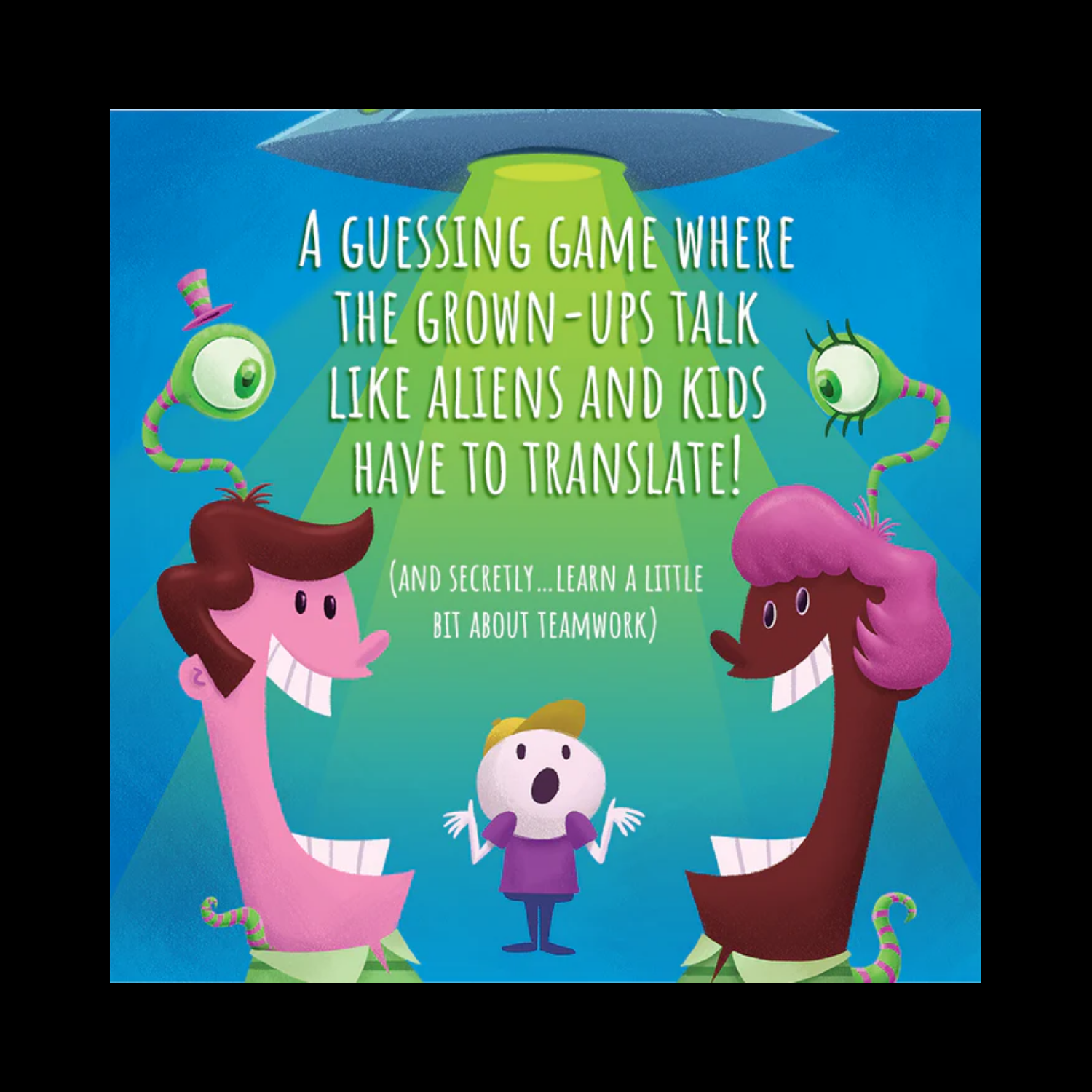 Un jeu de devinettes où les adultes parlent comme des extraterrestres et les enfants doivent traduire ! (et secrètement... apprendre un peu sur le travail d’équipe) Les enfants sont humains, les adultes sont martiens, et tout le monde rit !