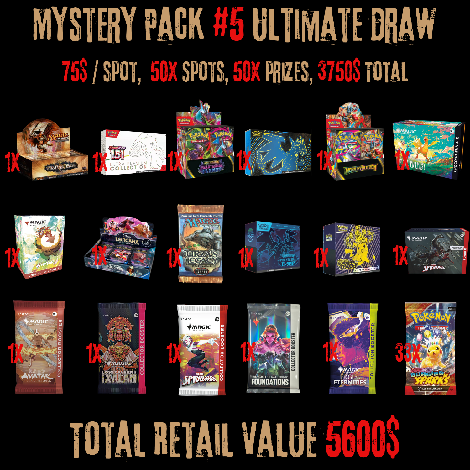 Paquets Mystère Tirage Ultime #5, 80$/place, 50x Prix, Bonus De 1850$. 3 Décembre, 18h15