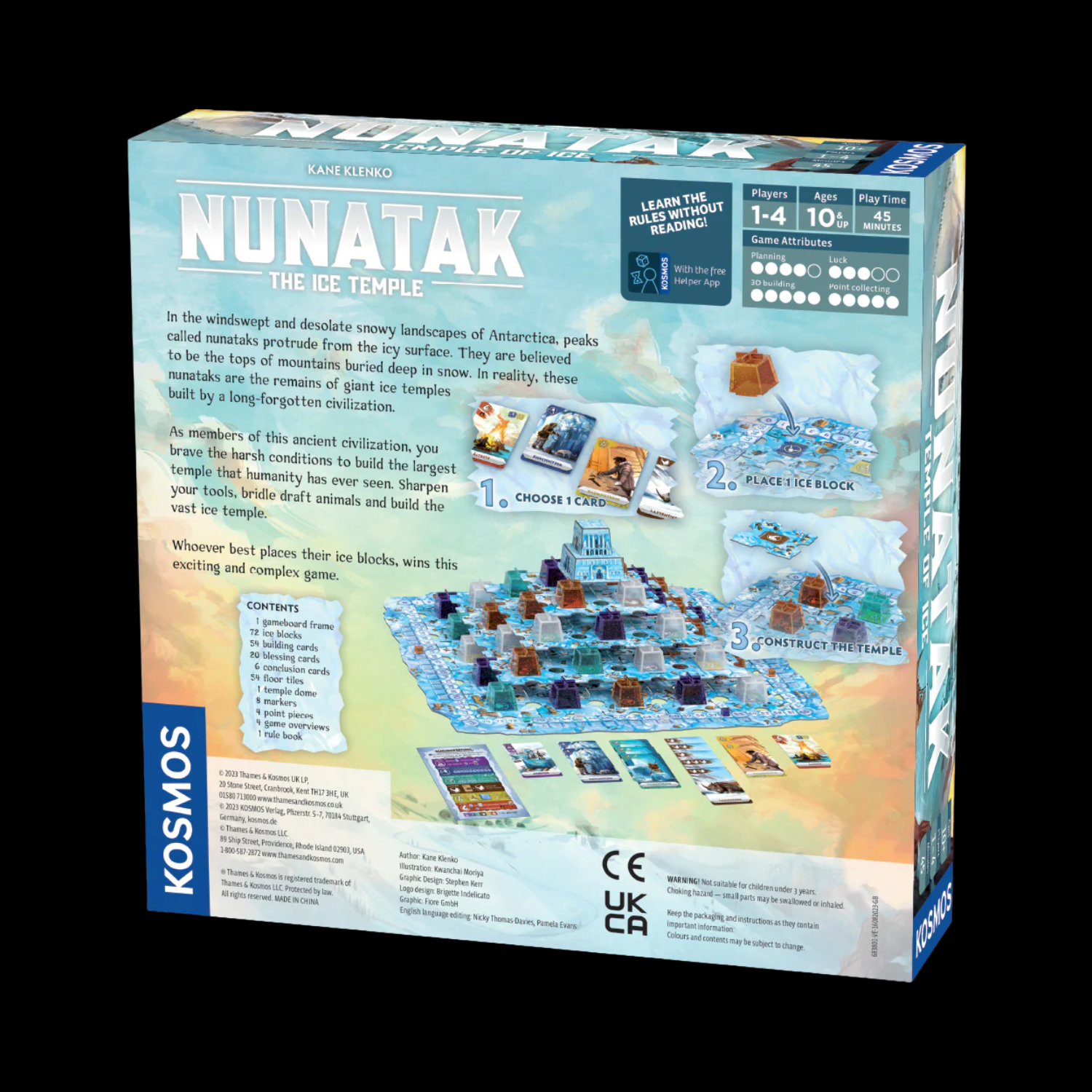 Gameplay : 1. Choisissez une carte. 2. Placez 1 bloc de glace. 3. Si vous pouvez, ajoutez une couche au temple.