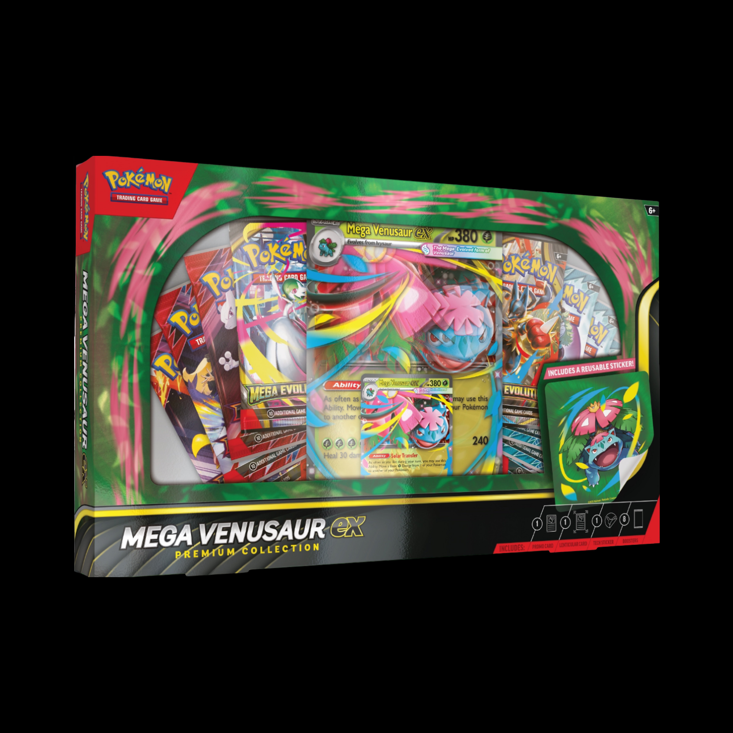 The Pokémon TCG: Mega Venusaur ex Premium Collection includes: