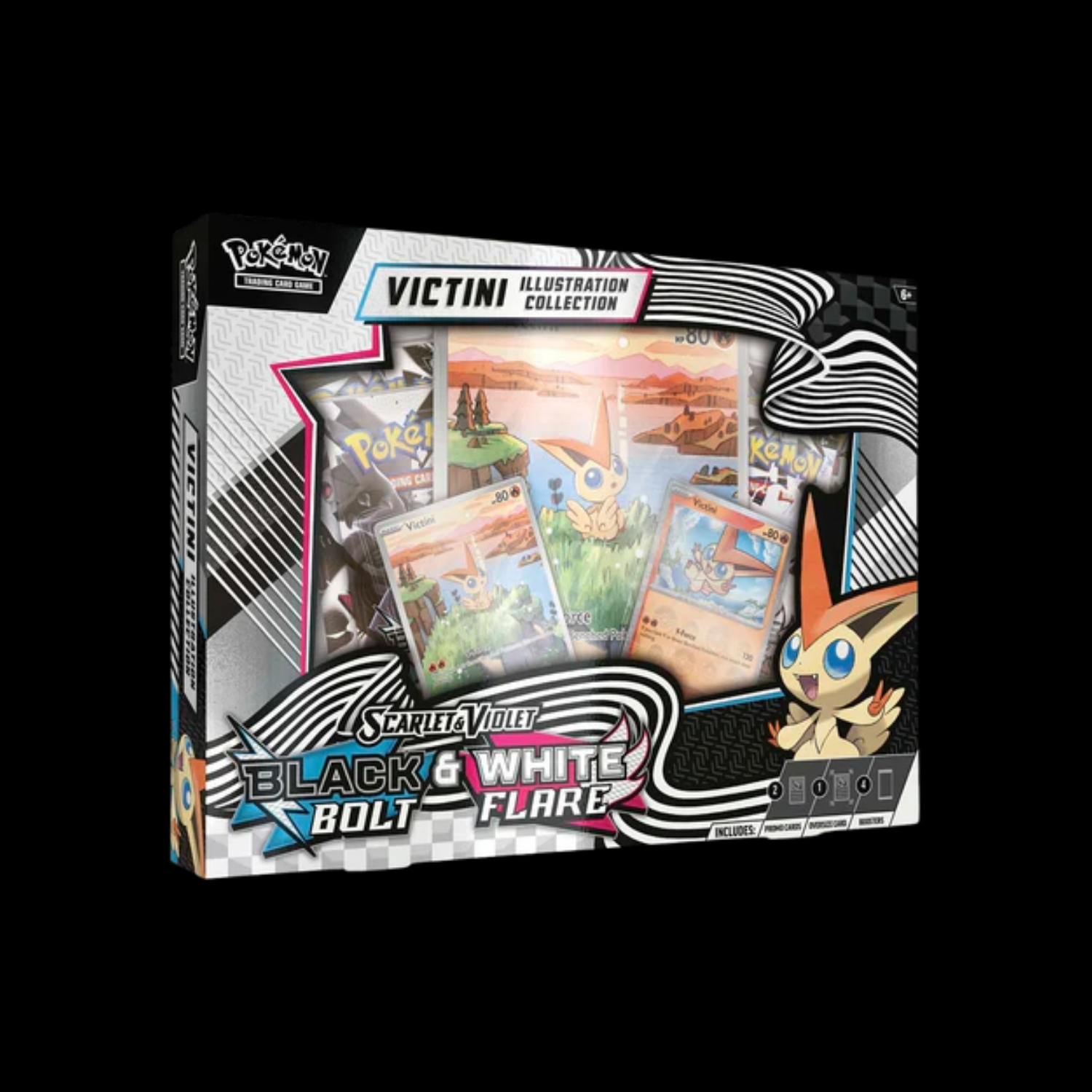The Mythical Pokémon Victini is said to create infinite energy that it can share with its friends, and now you can team up with it in your own Pokémon TCG decks! In this collection, you get an illustration rare-style foil promo card and a premium parallel foil card featuring Victini, along with an oversize card for display. You’ll find even more Pokémon from the Unova region inside the included booster packs from the special Scarlet & Violet—Black Bolt and Scarlet & Violet—White Flare expansions.
