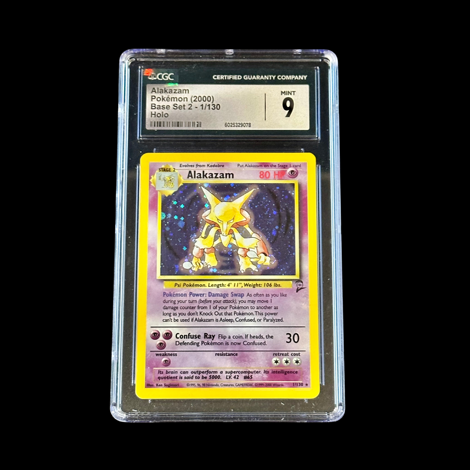 Pokemon Slab Alakazam Base Set 2 Holo 1/130 CGC 9 Mint 2000