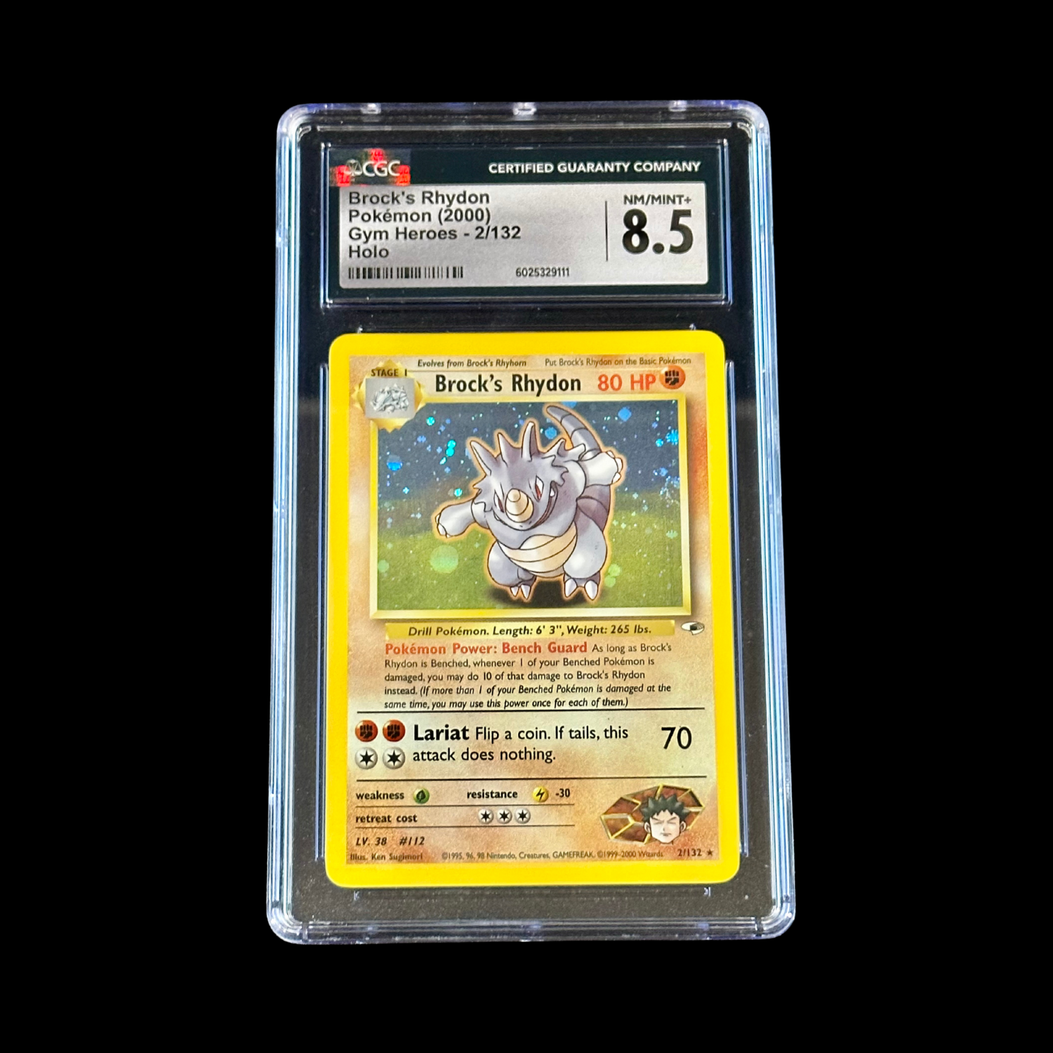 Pokemon Slab Brock's Rhydon Gym Heroes Holo 2/132 CGC 8.5 NM+ 2000