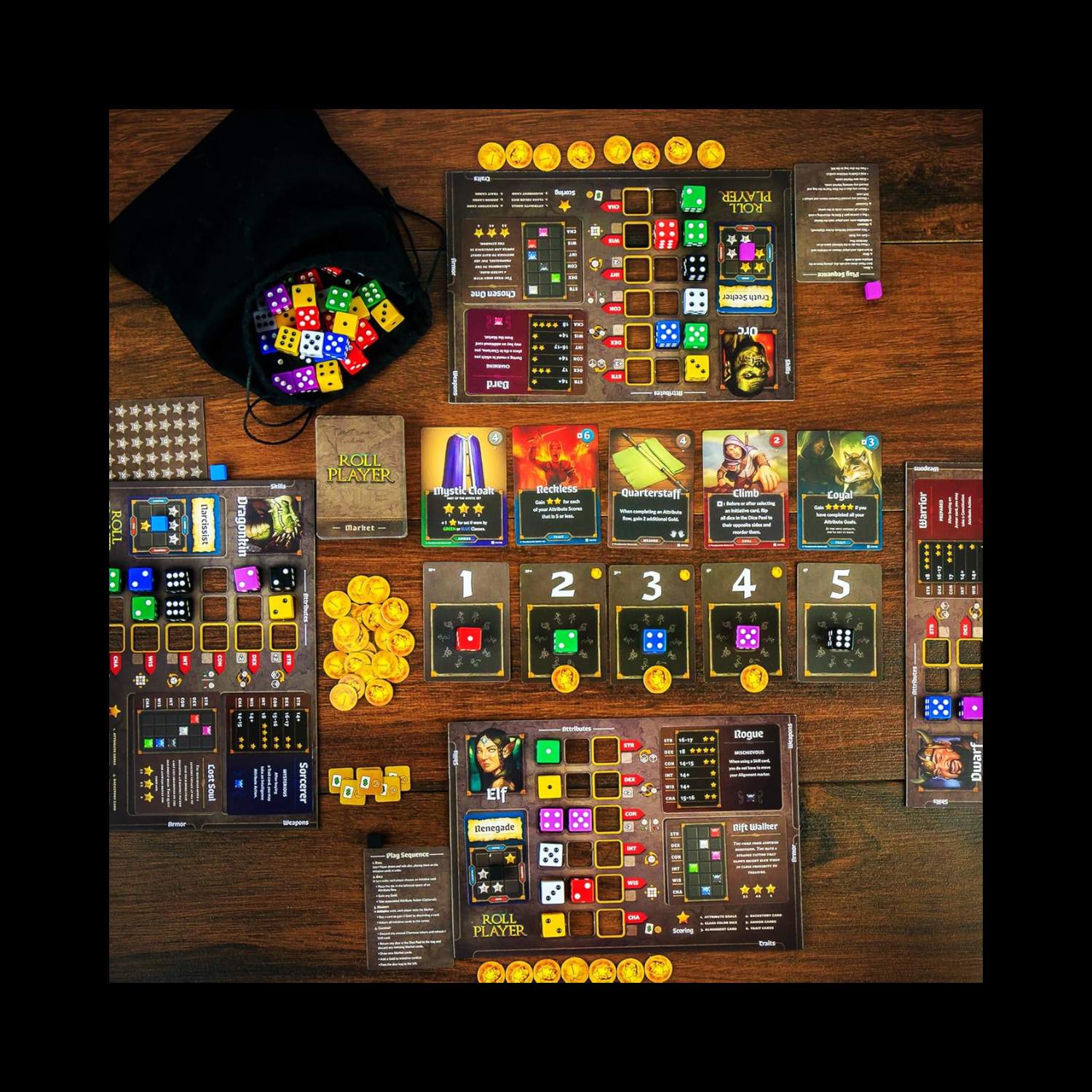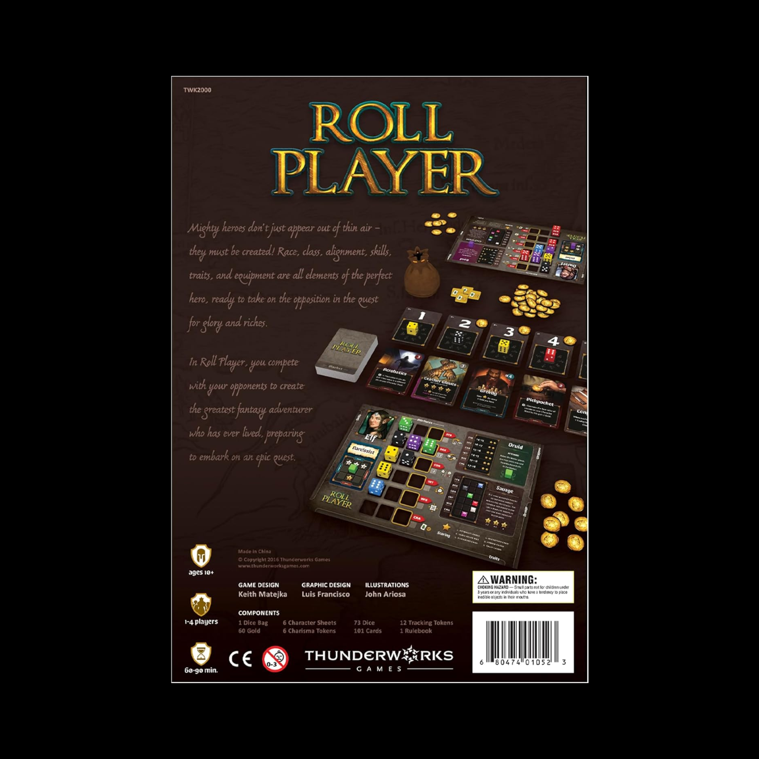 Dans Roll Player, les joueurs s’affrontent pour créer le plus grand aventurier fantastique ! Lancez et draftez des dés pour assembler les scores d’attributs de personnage. Achetez des armes et des armures pour équiper votre héros. Entraînez-vous pour acquérir des compétences et découvrez les traits de votre héros pour le préparer à son voyage. Gagnez de la réputation en construisant le personnage parfait. Le joueur avec la meilleure réputation gagne le jeu et triomphera sûrement de tout complot néfaste qui se profile à l’horizon !