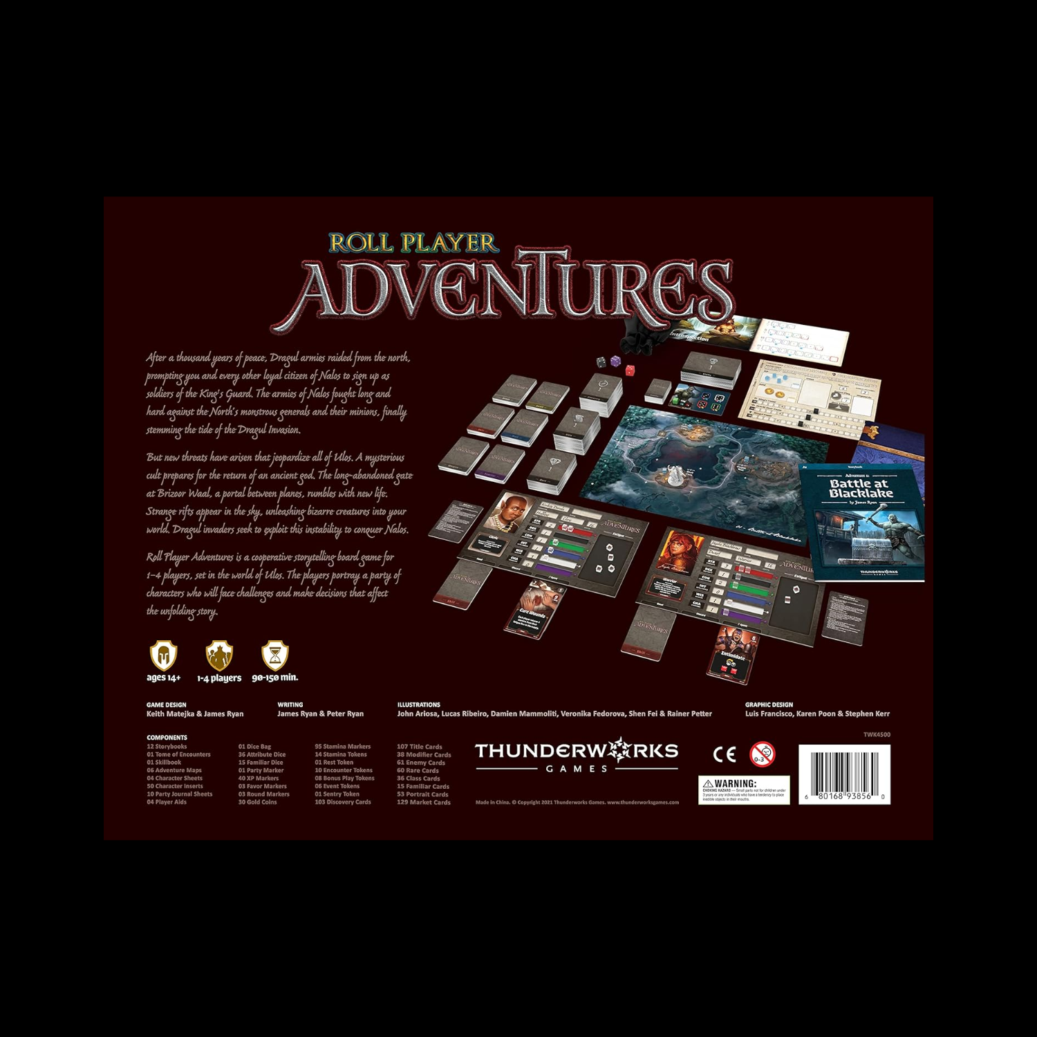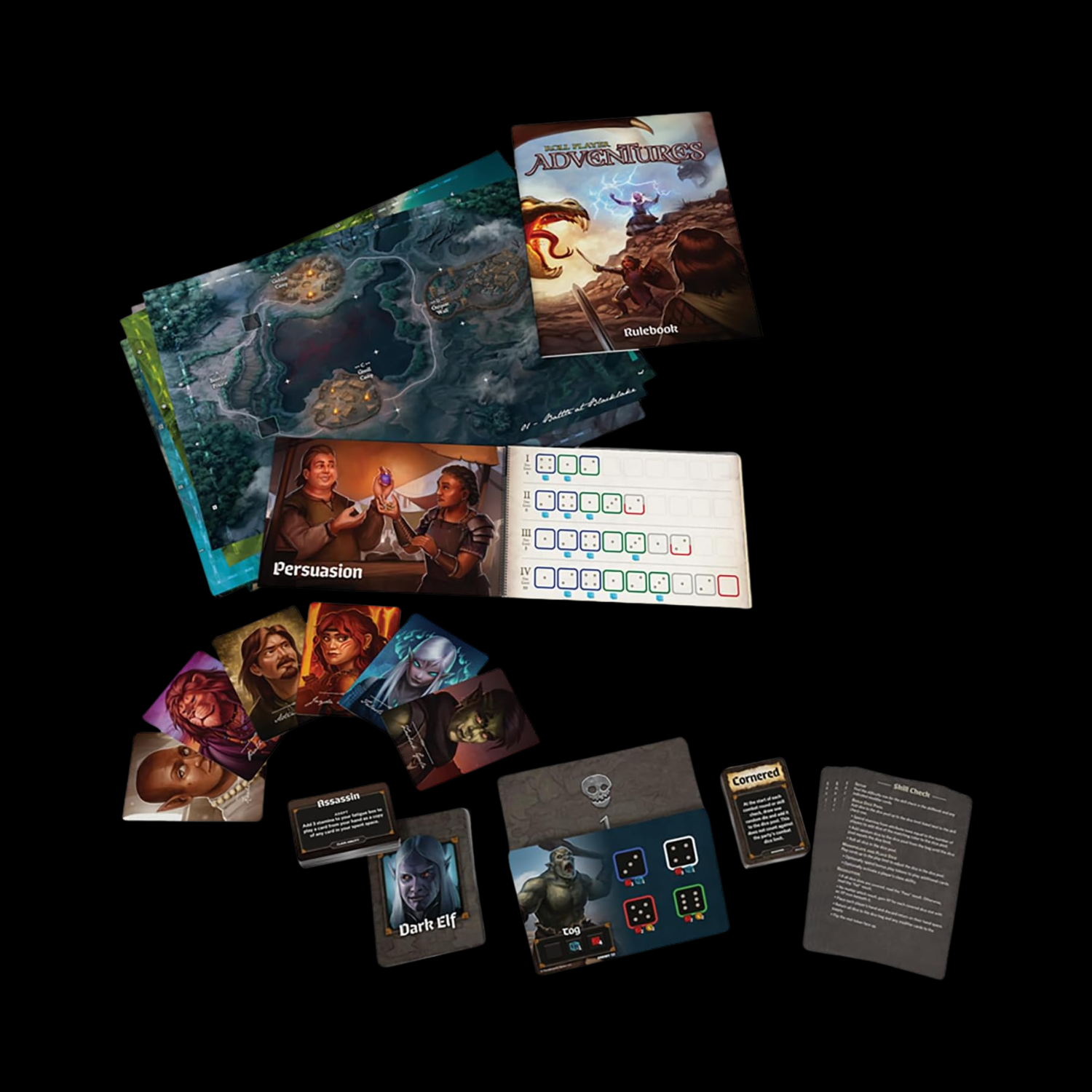 Nos personnages de Roll Player ont été appelés à l’aventure ! Dans Monstres & Minions, vous êtes partis en guerre contre les envahisseurs Dragul. Dans Fiends & Familiars, vous vous êtes lié d’amitié avec des bêtes sauvages et avez dissipé des esprits cruels. Maintenant, vos héros entièrement formés et endurcis par la bataille doivent défendre le royaume de Nalos et découvrir un mystère qui se trouve au cœur des terres abandonnées. Naviguez dans vos missions avec soin. C’est à vous de décider qui se lier d’amitié et qui combattre. Tuerez-vous le Giant Troll, ou tenterez-vous de faire la paix ? Allez-vous faire les ordres du Vampire, ou défendre les mystérieux cultistes qu’il veut détruire ? Resteras-tu loyal envers le Roi et le Pays, ou seras-tu du côté des ennemis de Nalos ? Quels que soient les choix que tu feras, quelqu’un se souviendra et répondra. Roll Player Adventures est un jeu de société coopératif pour 1 à 4 joueurs qui se déroule dans le monde de Roll Player. Les joueurs habitent des personnages, font face à des défis et prennent des décisions qui changeront l’histoire au fur et à mesure qu’ils progressent dans 11 aventures principales et une quête secondaire rejouable. Adventures ne nécessite pas le jeu de base Roll Player ou l’une de ses extensions pour jouer. Choisissez parmi l’un des six personnages prégénérés, ou importez un personnage préféré de Roll Player et emmenez-le dans un voyage héroïque. Si vous importez un personnage que vous avez construit dans Roll Player, n’importe quel nombre d’extensions et n’importe quel nombre de cartes/tableaux promotionnels qui ont été utilisés peuvent continuer à être utilisés dans Roll Player Adventures.