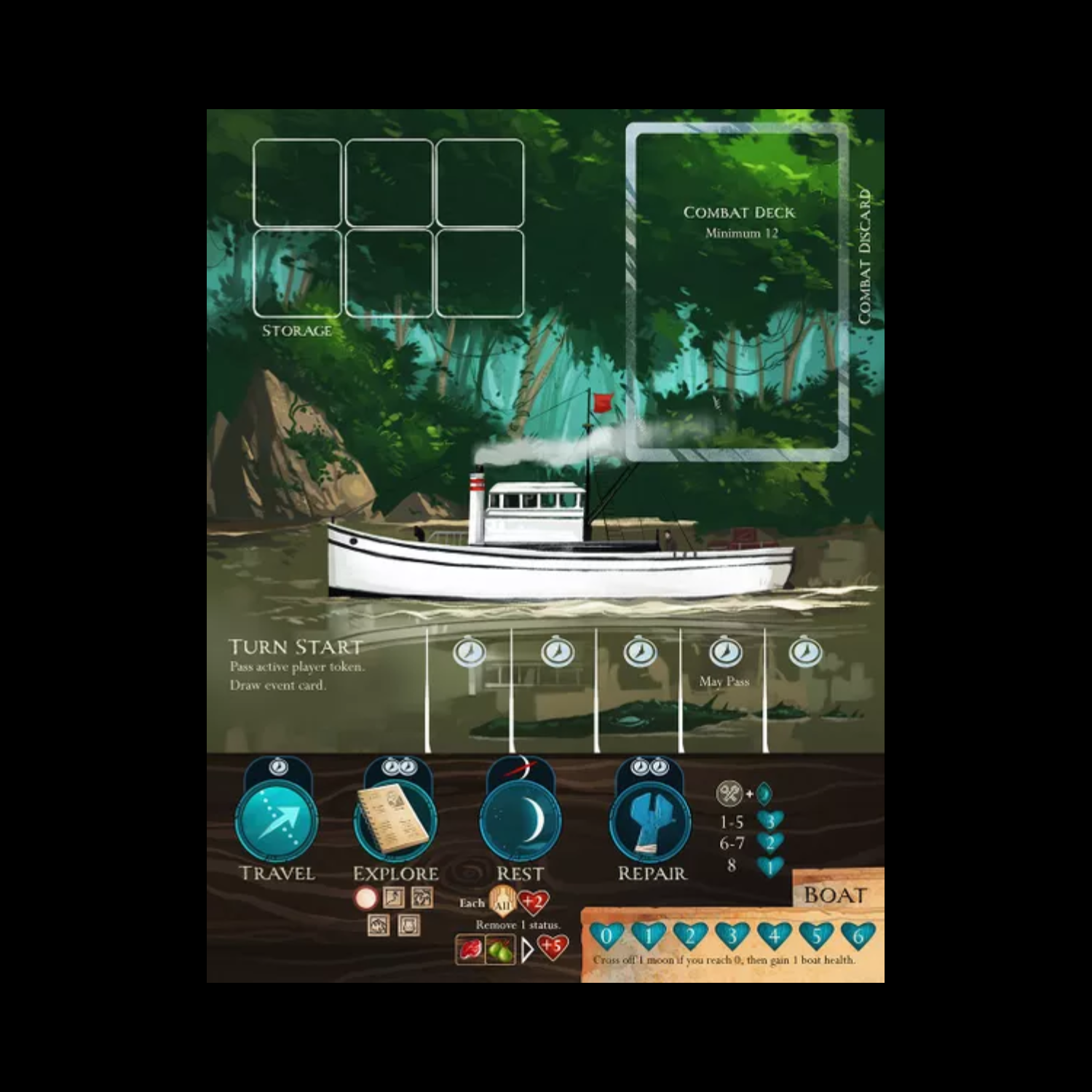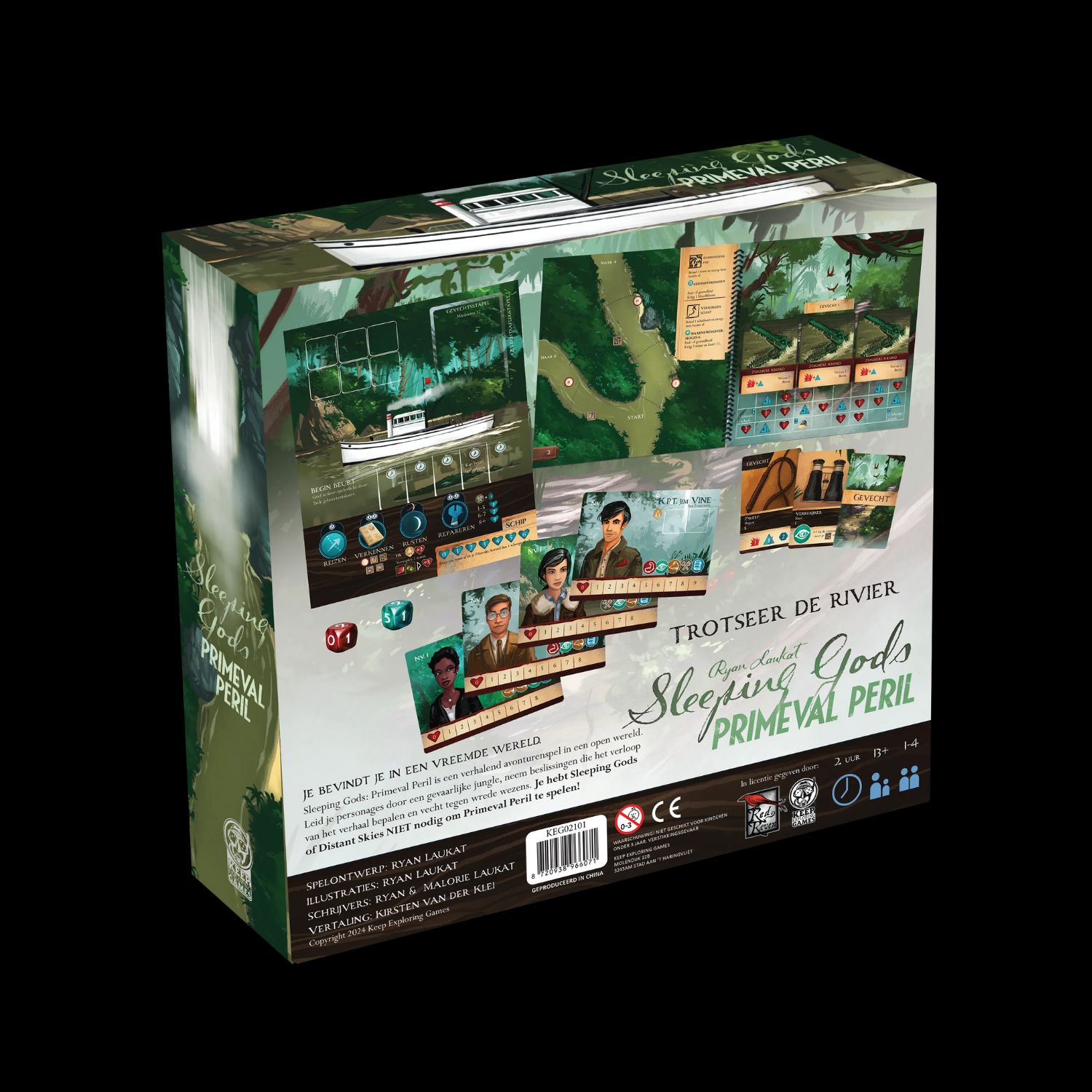 Primeval Peril se déroule sur une rivière dangereuse qui serpente à travers la jungle luxuriante. Il inclut de nouveaux personnages et histoires afin que rien du jeu de base Sleeping Gods ne soit gâché.