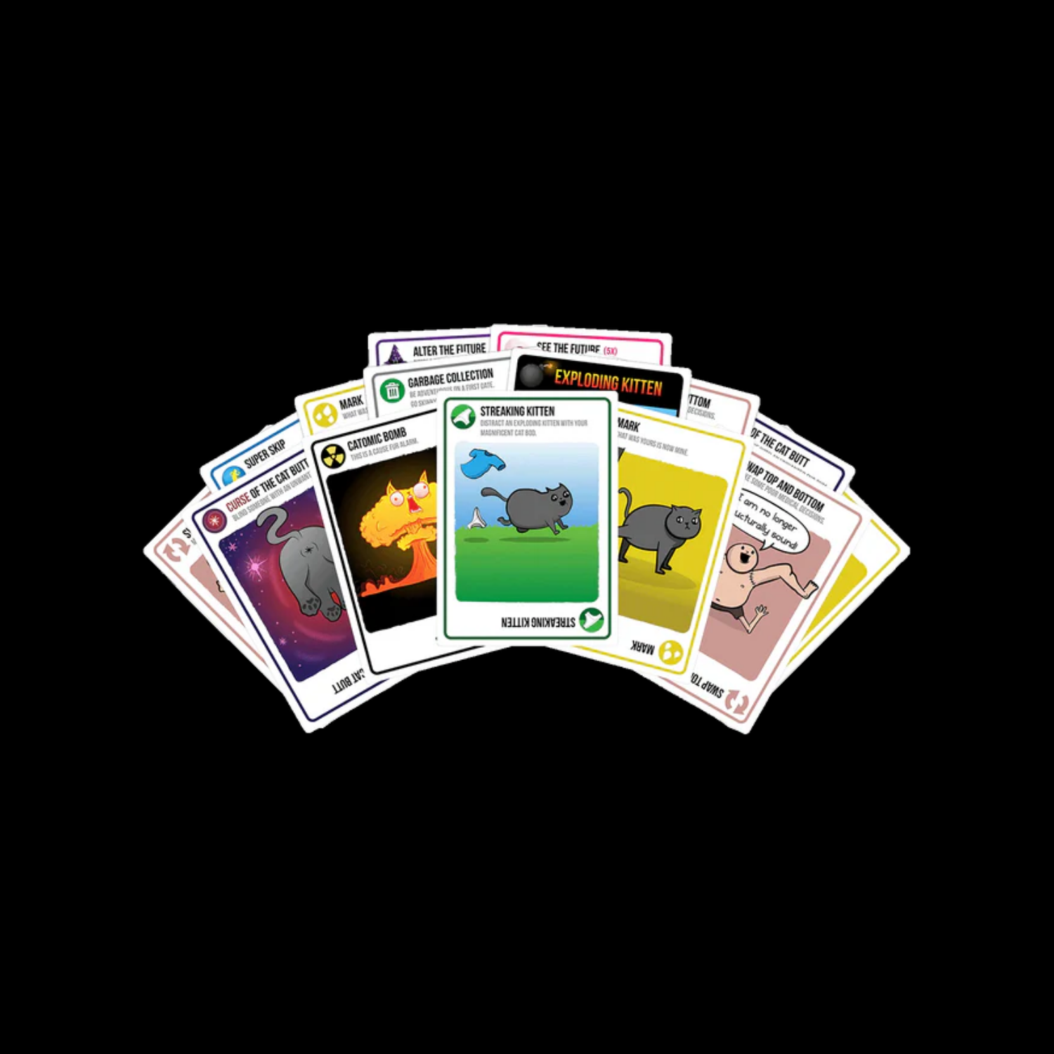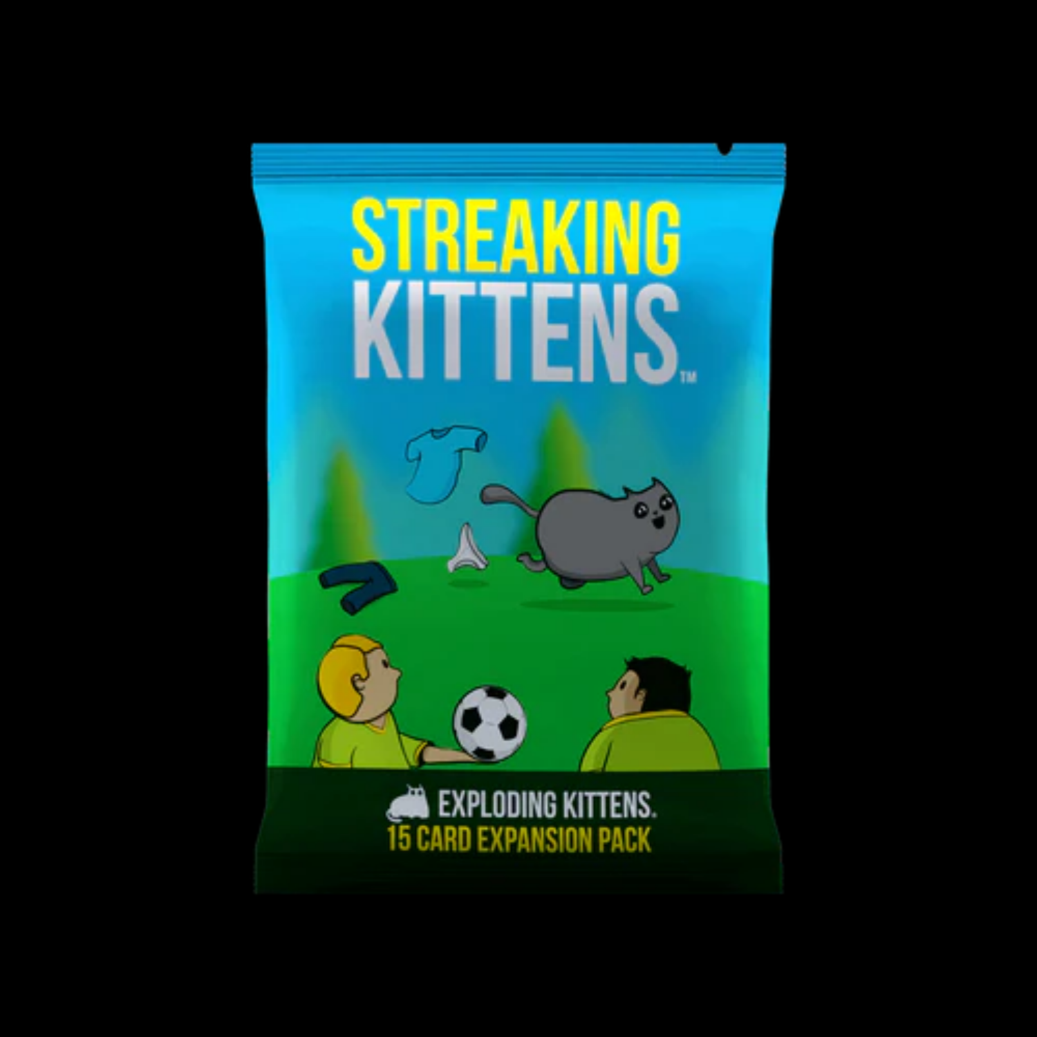 Comporte la carte "Streaking Kitten" qui permet aux joueurs de tenir secrètement un Kitten explosif dans leur main sans exploser