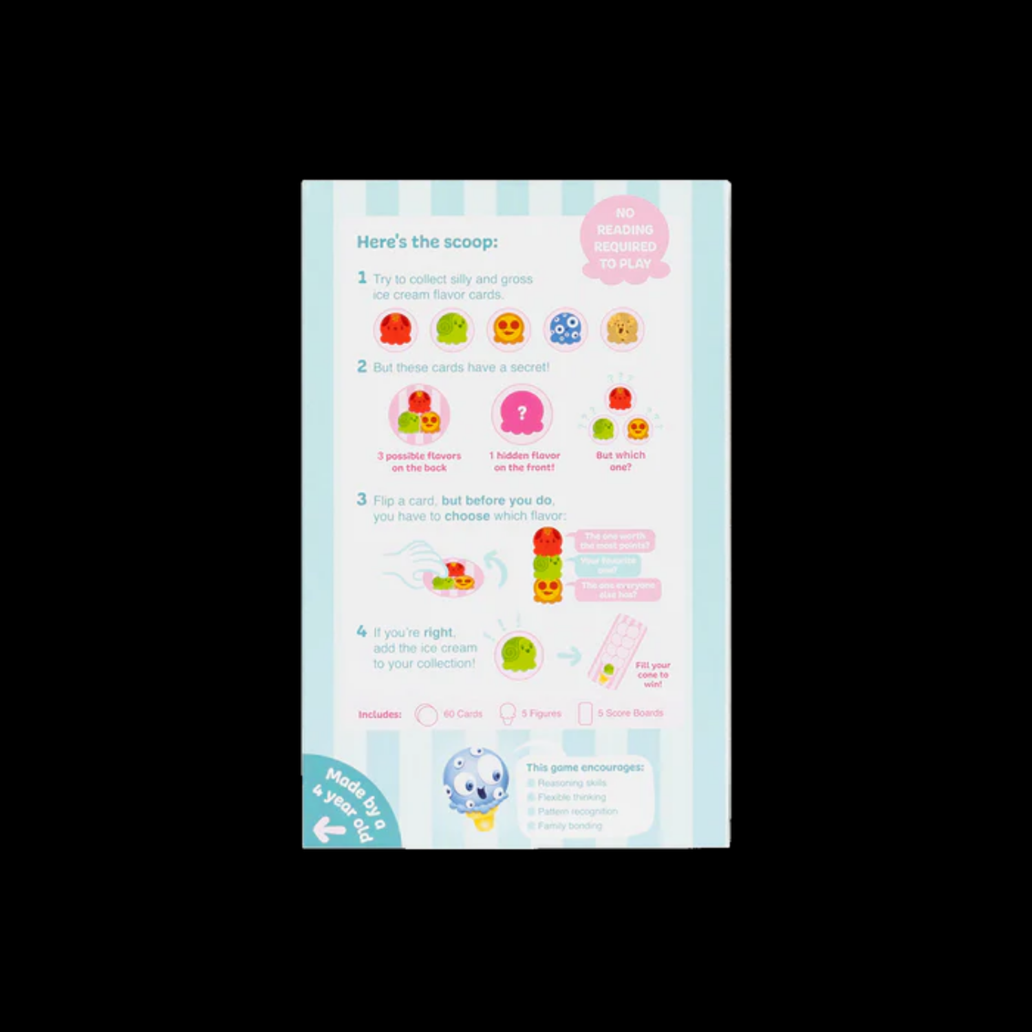 Ils utiliseront le raisonnement et la pensée créative pour assortir les saveurs et remplir leur cornet de glace, et vous aurez du plaisir à jouer avec. Il est facile à apprendre et rapide de jouer avec des saveurs funky qui suscitent des conversations créatives.
