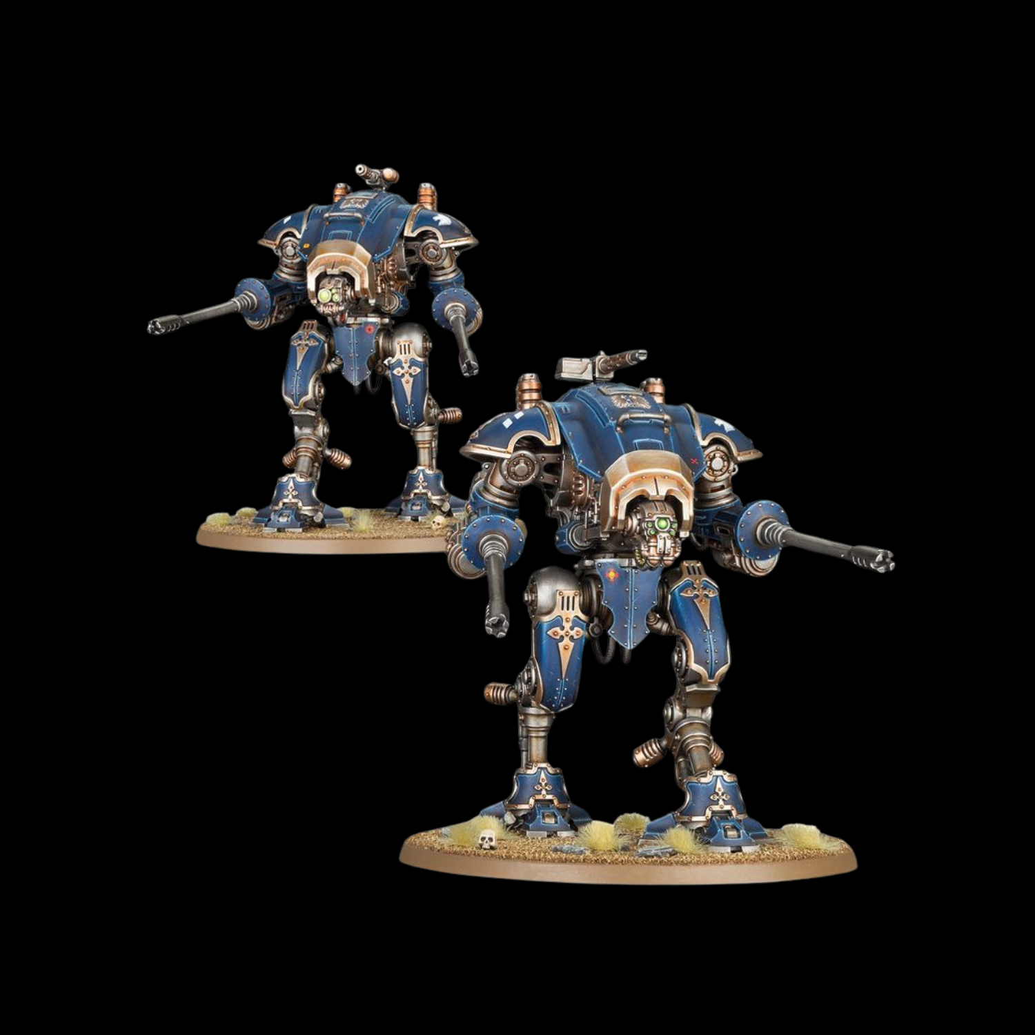 – Armiger Warglaive, armed with thermal spear, reaper chain-cleaver, and either a Questoris heavy stubber or meltagun
