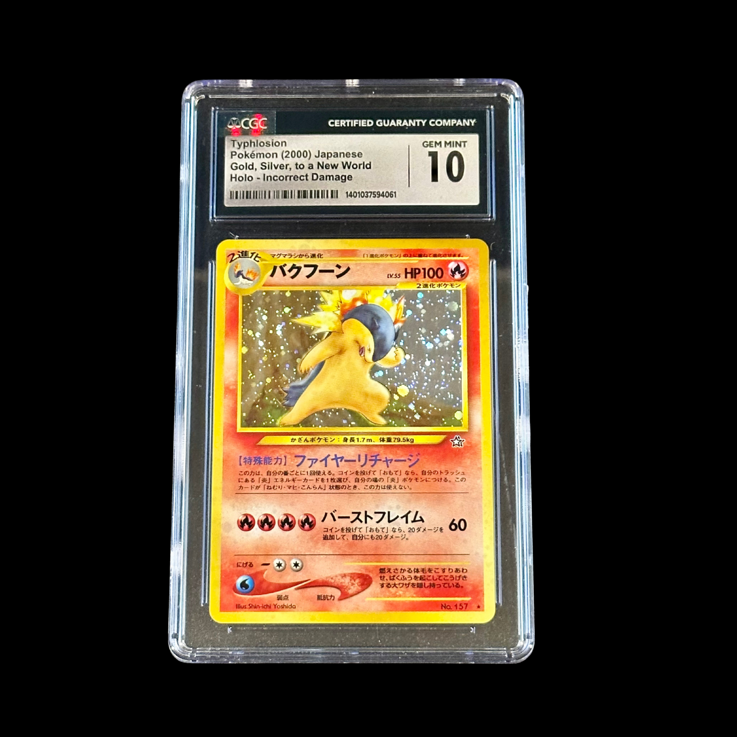Pokemon JP Slab Typholsion Gold, Silver, To A New World Holo ERROR Incorrect Damage CGC 10 Gem 2000