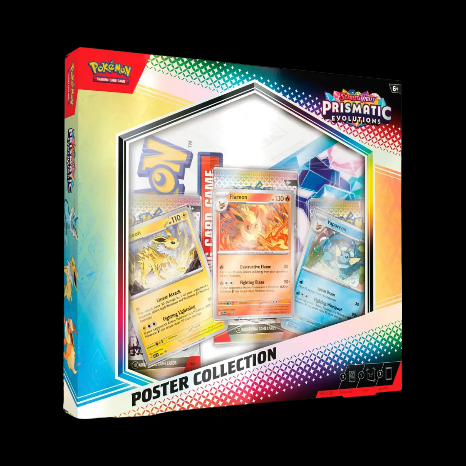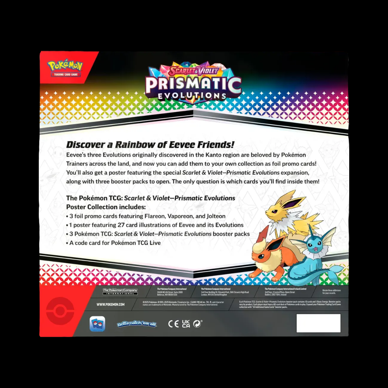 The Pokémon TCG: Scarlet & Violet—Prismatic Evolutions Poster Collection includes: