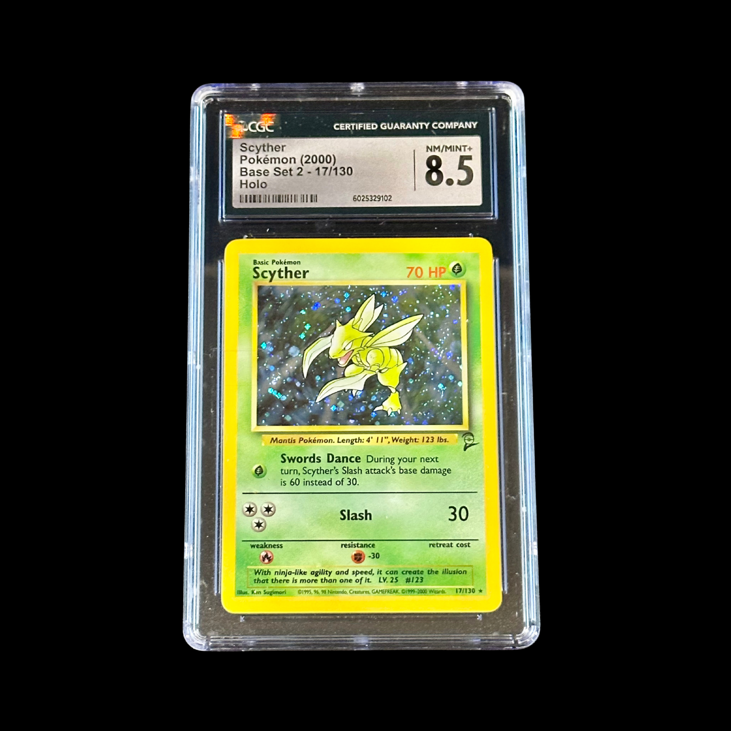 Pokemon Slab Scyther Base Set 2 Holo 17/130 CGC 8.5 NM+ 2000