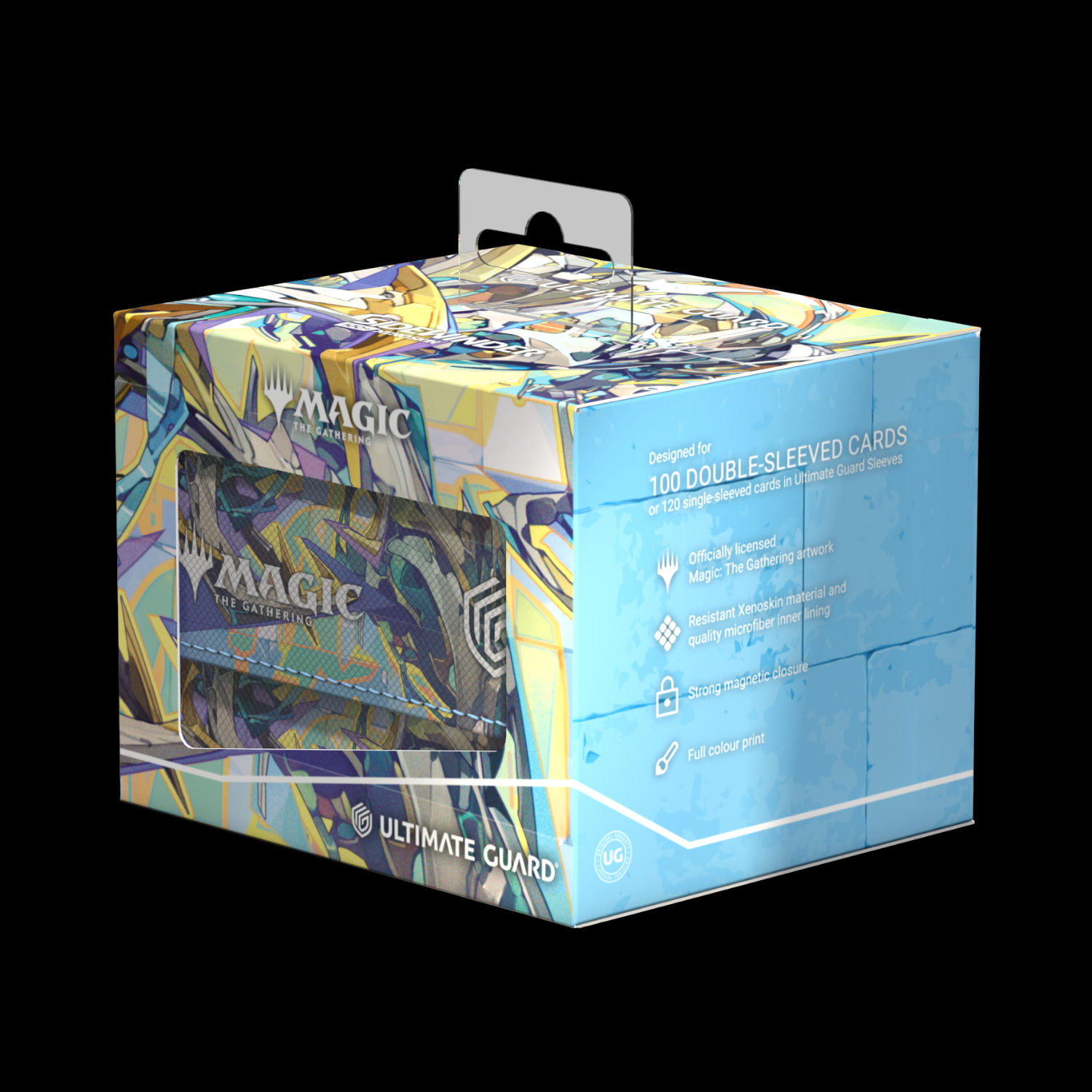 The Sidewinder 100+ Xenoskin is a high-quality TCG deck box that offers premium card protection thanks to its resistant Xenoskin material, microfiber inner lining, and strong magnetic closure, while still granting easy and convenient access to the deck inside. The deck boxes are printed in full color with officially licensed artworks from Magic: The Gathering. The Sidewinder 100+ Xenoskin is optimized to hold 100 double-sleeved or 120 single-sleeved cards in Ultimate Guard sleeves.