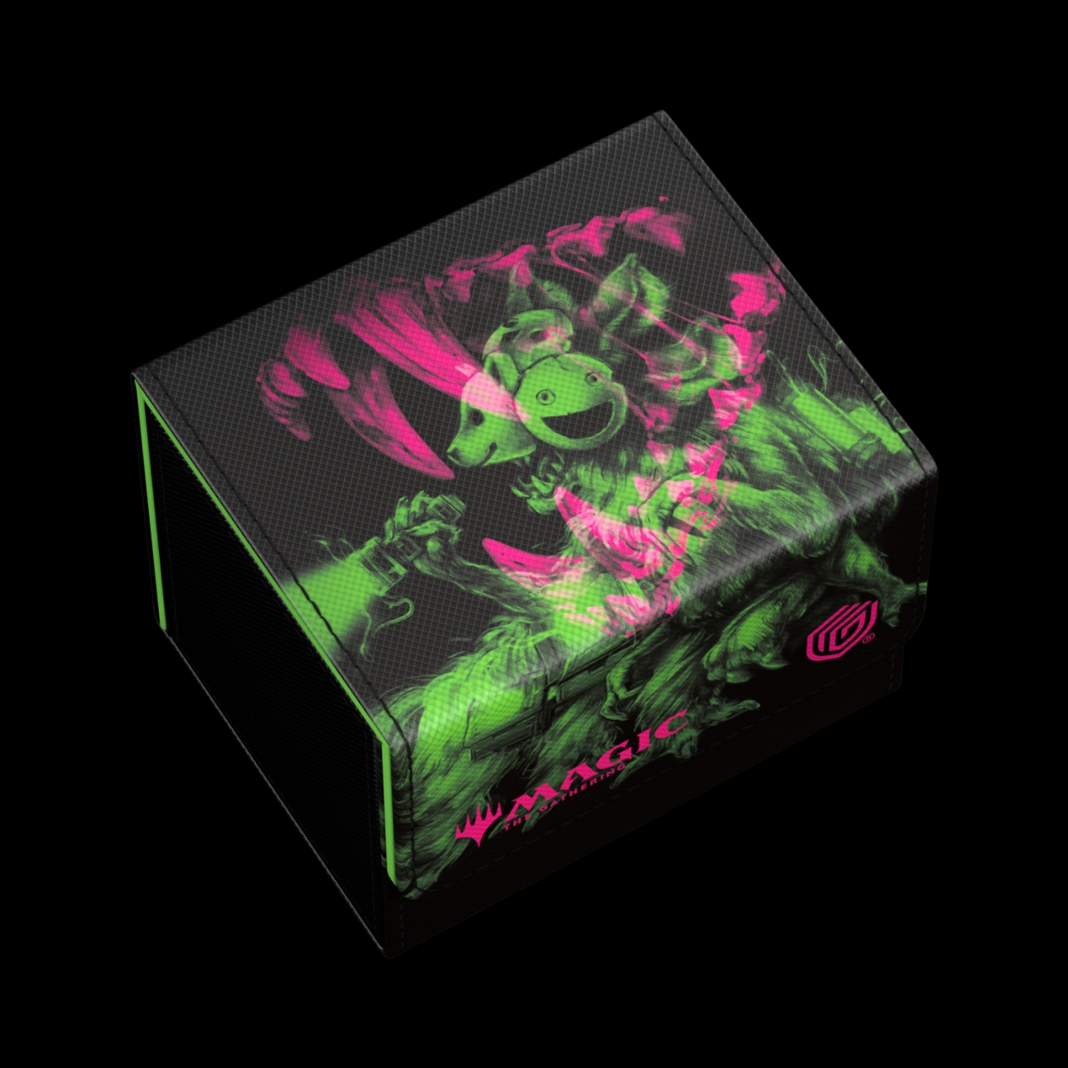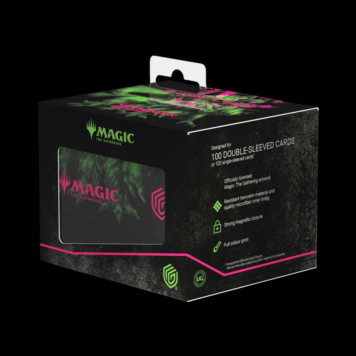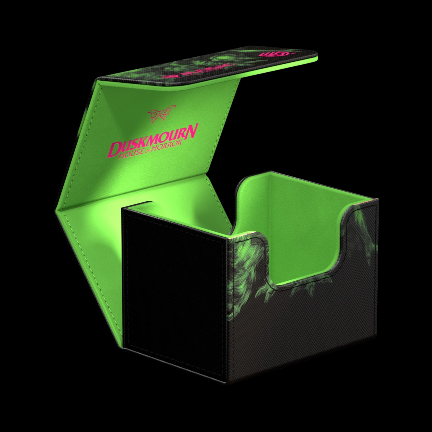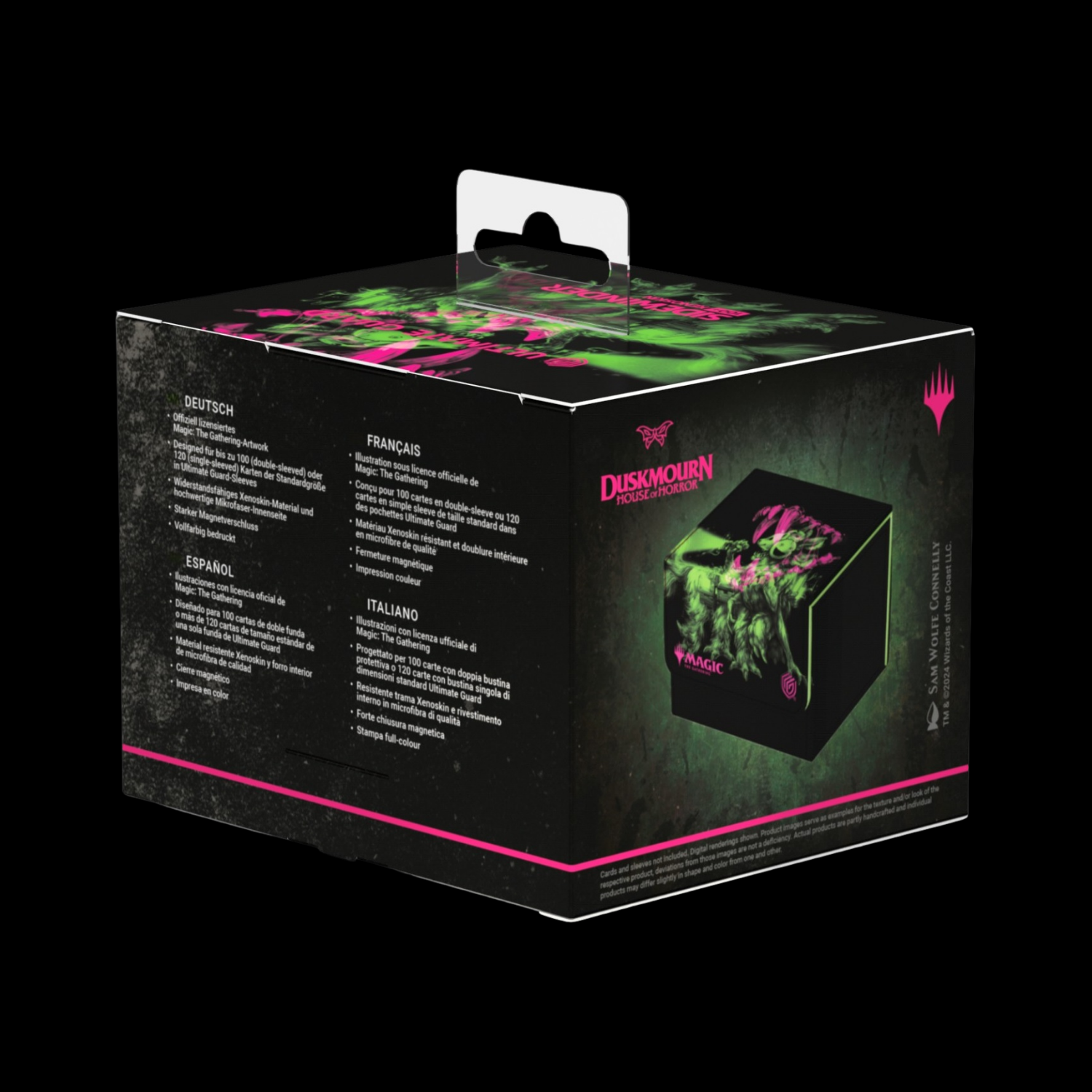 The Sidewinder 100+ Xenoskin is a high-quality TCG deck box that offers premium card protection thanks to its resistant Xenoskin material, microfiber inner lining, and strong magnetic closure, while still granting easy and convenient access to the deck inside. The deck boxes are printed in full color with officially licensed artworks from Magic: The Gathering’s upcoming set “Duskmourn”. The Sidewinder 100+ Xenoskin is optimized to hold 100 double-sleeved or 120 single-sleeved cards in Ultimate Guard sleeves.