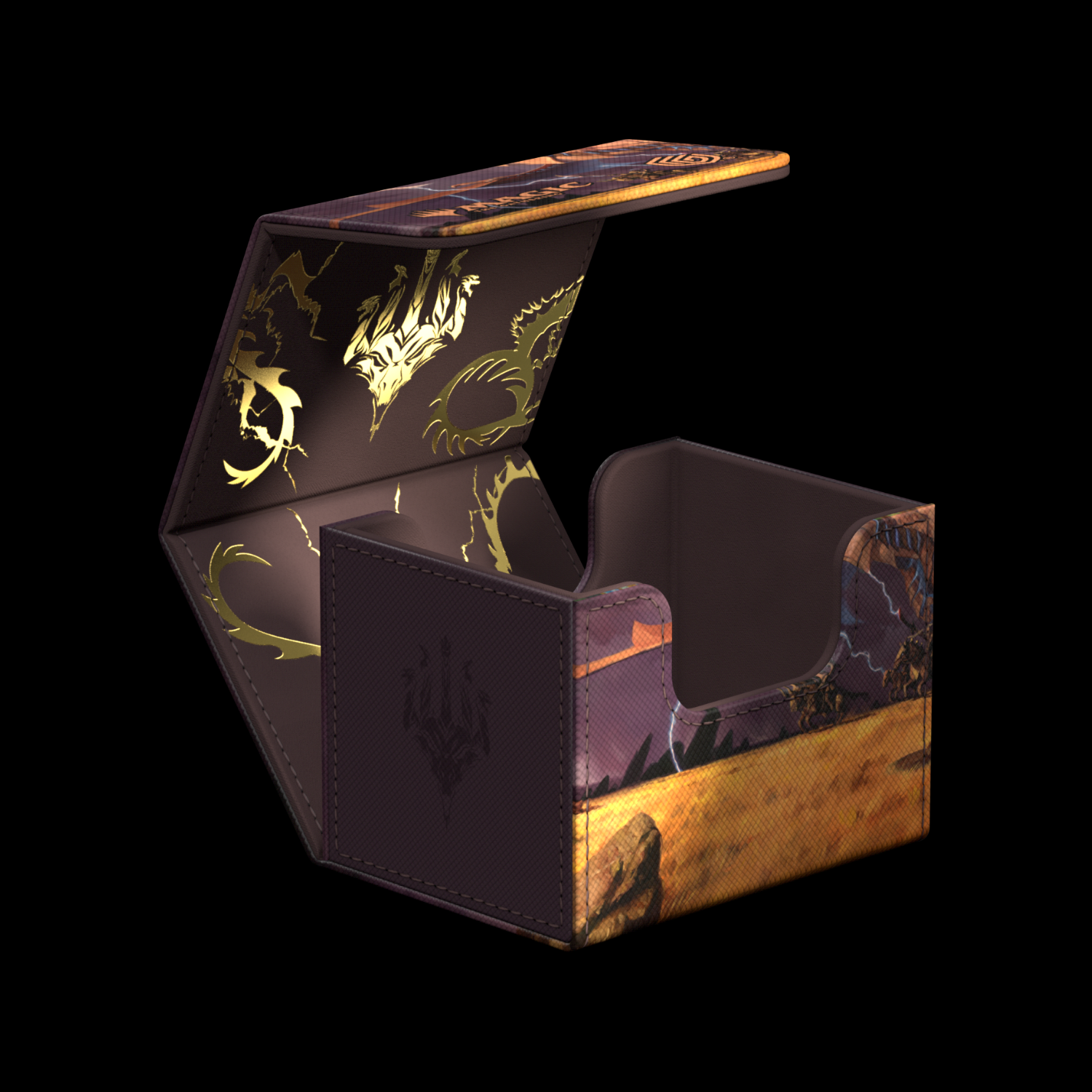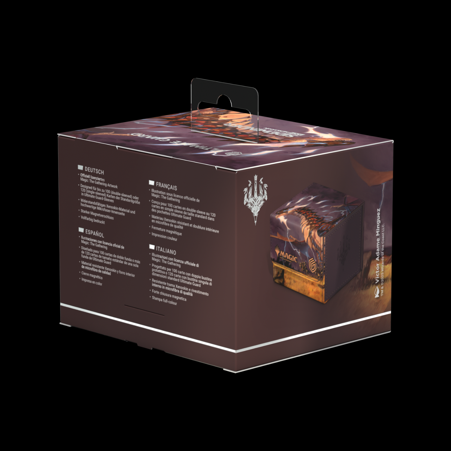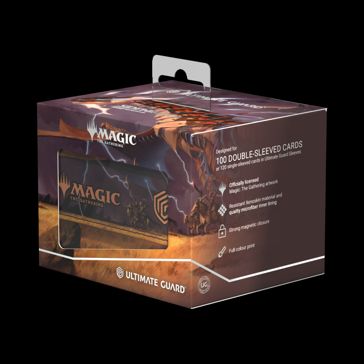 The Sidewinder 100+ Xenoskin is a high-quality TCG deck box that offers premium card protection thanks to its resistant Xenoskin material, microfiber inner lining, and strong magnetic closure, while still granting easy and convenient access to the deck inside. The deck boxes are printed in full color with officially licensed artworks from Magic: The Gathering. The Sidewinder 100+ Xenoskin is optimized to hold 100 double-sleeved or 120 single-sleeved cards in Ultimate Guard sleeves.