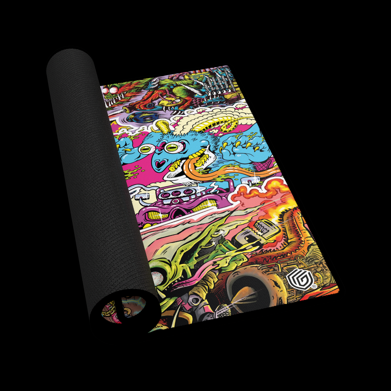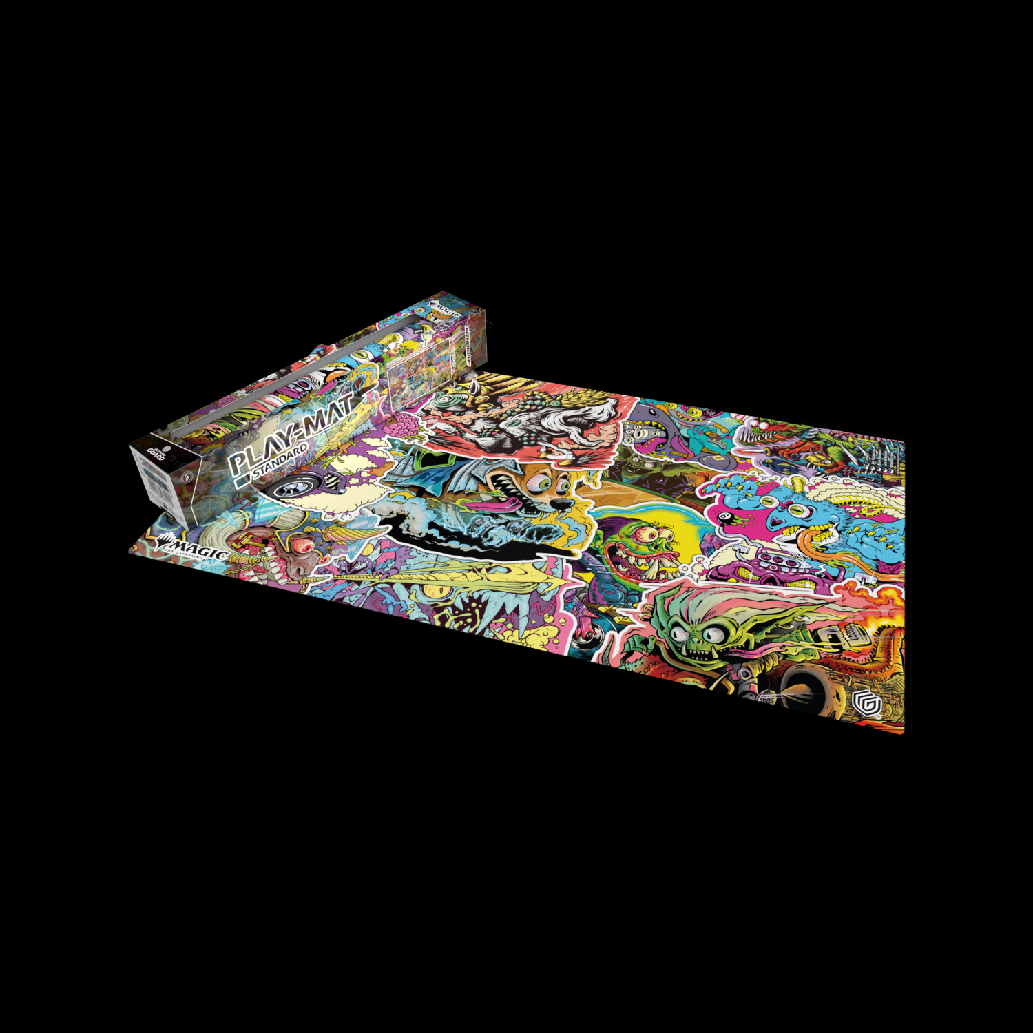 The 61x35cm Play-Mat protects cards and sleeves while playing and improves the gaming experience thanks to its anti-slip underside, while the stitched edges guarantee an even longer service life. The top side of the Play-Mat is printed with officially licensed artworks from Magic: The Gathering’s set “Aetherdrift”.