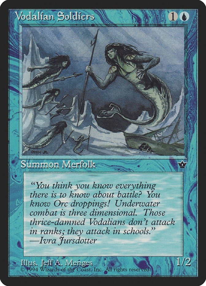 | Flavor: | "You think you know everything there is to know about battle? You know Orc droppings! Underwater combat is three dimensional. Those thrice-damned Vodalians don't attack in ranks; they attack in schools."
