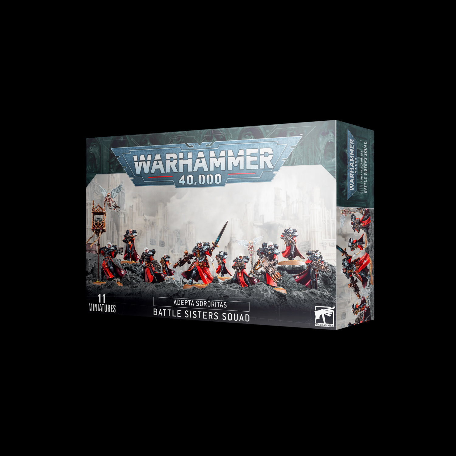 This multipart plastic kit builds 10 Battle Sisters, accompanied by an Incensor Cherub. Each Battle Sister is equipped with a boltgun, and one can carry a sacred simulacrum imperialis, wrought from the bones of a saint. They are led by a Sister Superior with an arsenal of weapon options – a chainsword or power sword for close combat, alongside a plasma pistol, bolt pistol, boltgun, condemnor, or a variety of combi-weapons. The kit also includes a variety of special weapons to equip your Battle Sisters – flamers, meltaguns, and storm bolters – as well as a heavy bolter and heavy flamer for even more intense firepower.