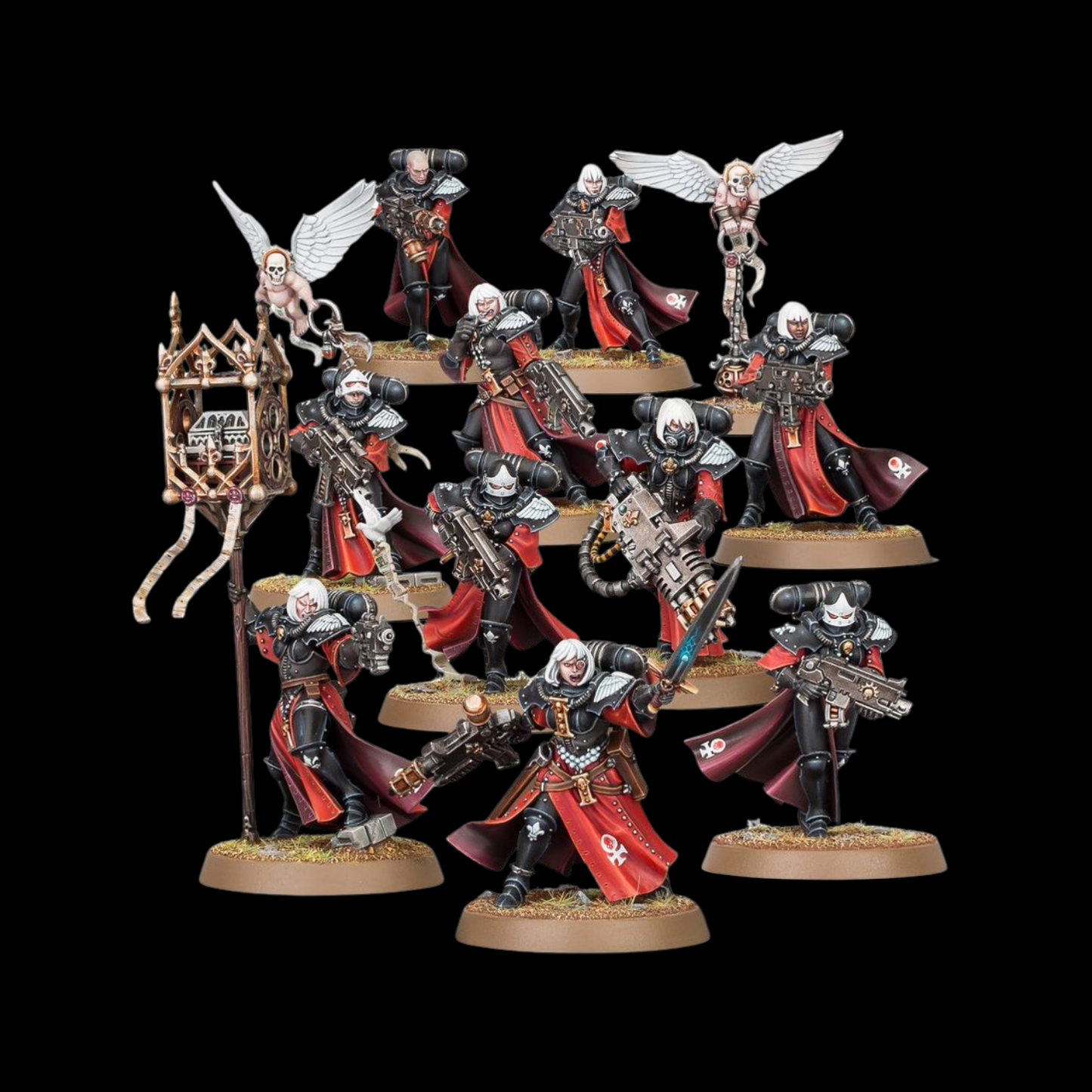 This kit comprises 179 plastic components, and comes with 10x Citadel 32mm Round Bases and 1x Citadel 25mm Round Base, as well as an Adepta Sororitas Transfer Sheet. These miniatures are supplied unpainted and require assembly – we recommend using Citadel Plastic Glue and Citadel Colour paints.