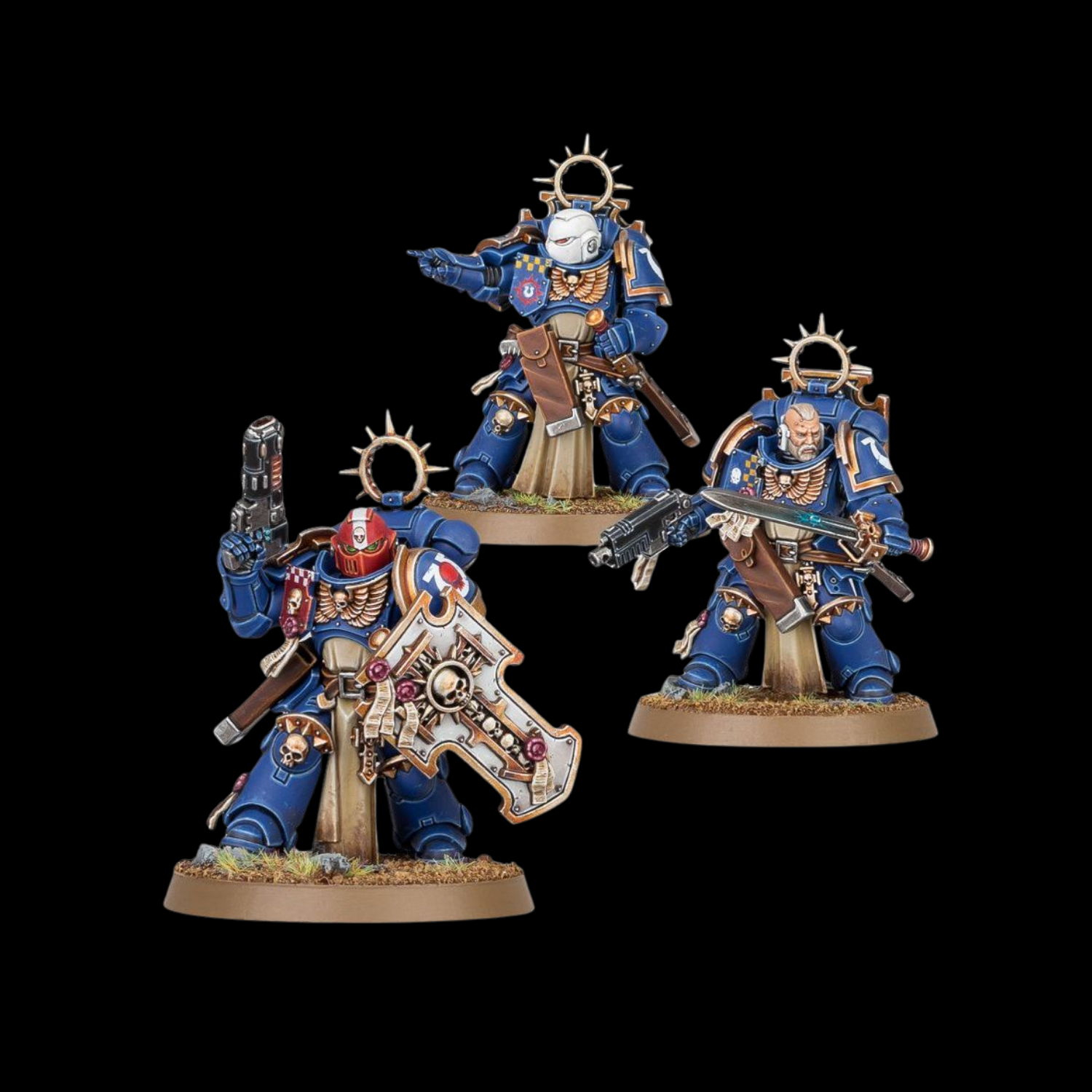 Lead the charge with these close combat masters. Each is armed with a master-crafted power sword and equipped with a storm shield. There is an option to make one of the squad into a sergeant. The kit also includes multiple head, tilting plate, pistol, and holster variants as well as plasma pistol and neo-volkite pistol options for the sergeant. These grizzled veterans are clad in the finest plate, which looks great in the colours of any Chapter.