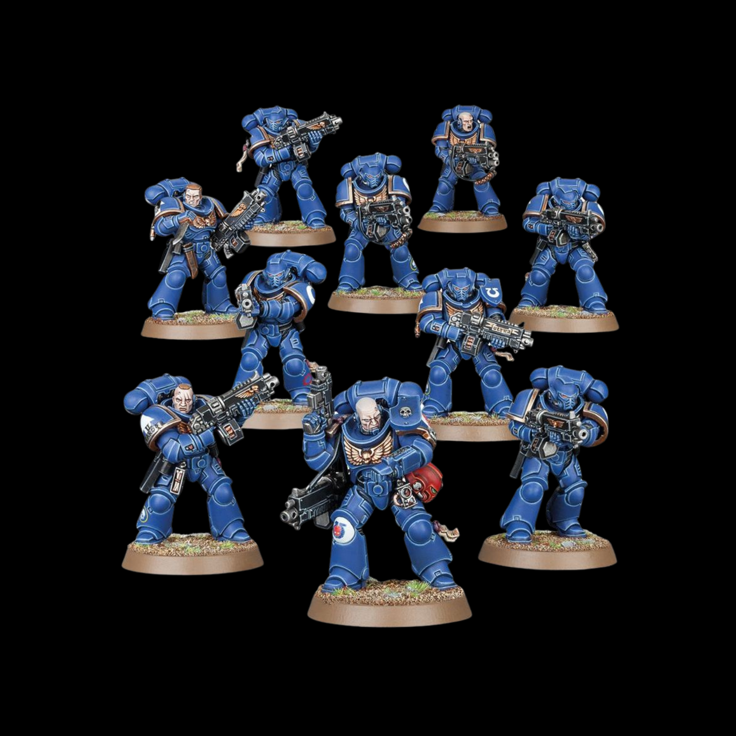 The models can be assembled as either a 10-man squad, a squad of 9 Intercessors with a Sergeant or 2 separate 5-man squads, each with a Sergeant of their own. The Sergeants feature unique heads, with a helmet mag-locked to their belt, and unique tilting plates to help them stand out.