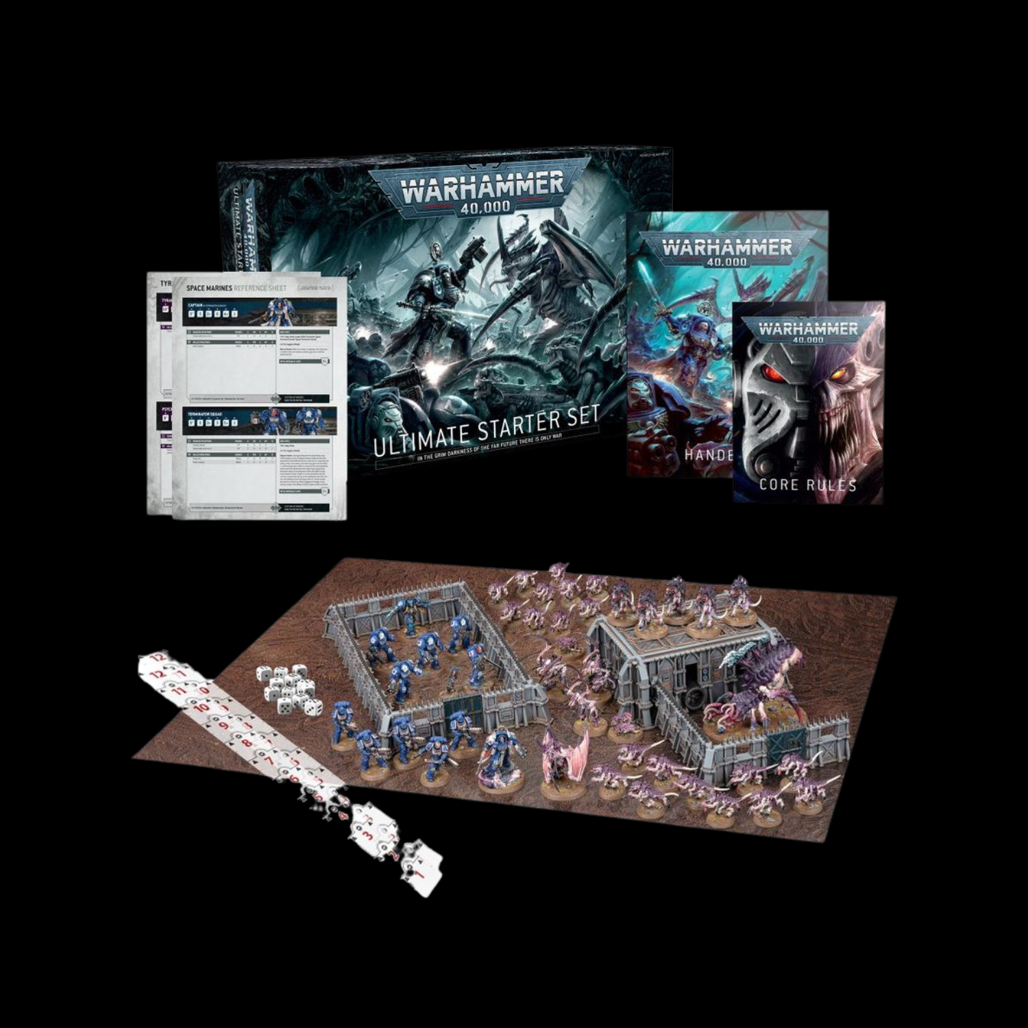 1x 72-page softcover Warhammer 40,000 Ultimate Starter Set Handbook – Includes construction guides, rules tutorials, and training missions to get you up to speed without hassles and headaches